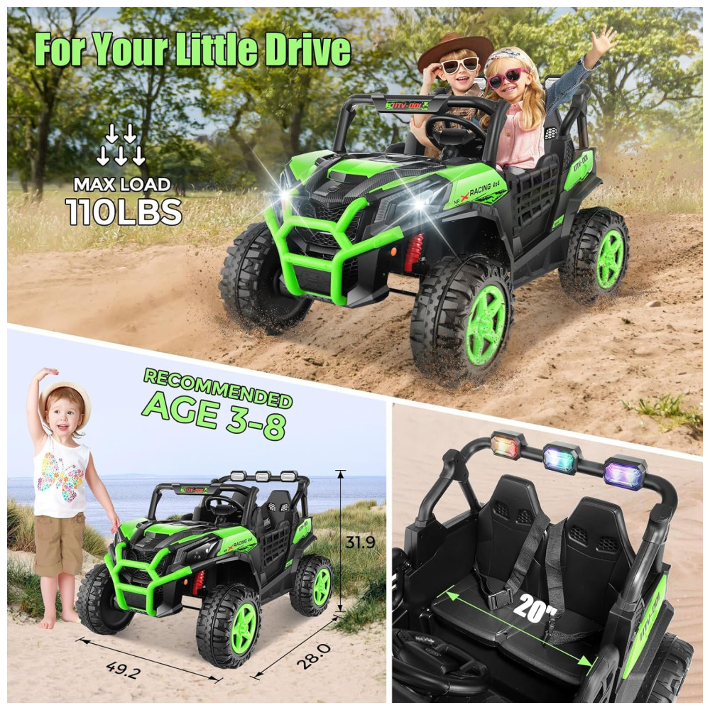 O Carro Elétrico Infantil Off Road estilo UTV é um carrinho infantil espaçoso e perfeito para crianças a partir de 3 anos. Com dimensões de 124 cm de comprimento, 81 cm de largura e 76 cm de altura, você pode ficar tranquilo quanto ao tamanho adequado para o seu filho.