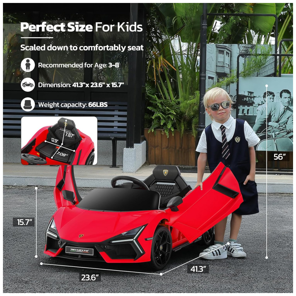 Carro Elétrico Infantil Lamborghini com Controle Remoto Porta de Tesoura MP3 Player Luz LED e Assento Largo 12V ELEMARA Vermelha