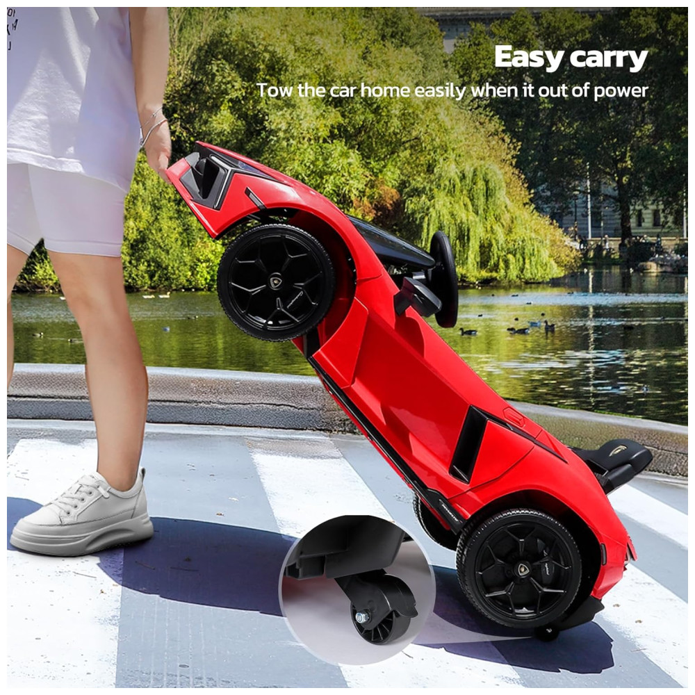 O Carro Elétrico Infantil EMARA 12V com Controle Remoto é uma incrível opção de presente para datas especiais como Natal, Halloween e aniversários. Licenciado pela Lamborghini, este carro esportivo combina um design elegante e aerodinâmico com detalhes autênticos dos verdadeiros Lamborghinis, como faróis de LED, um console de controle multifuncional, portas estilo tesoura e um tocador de música.