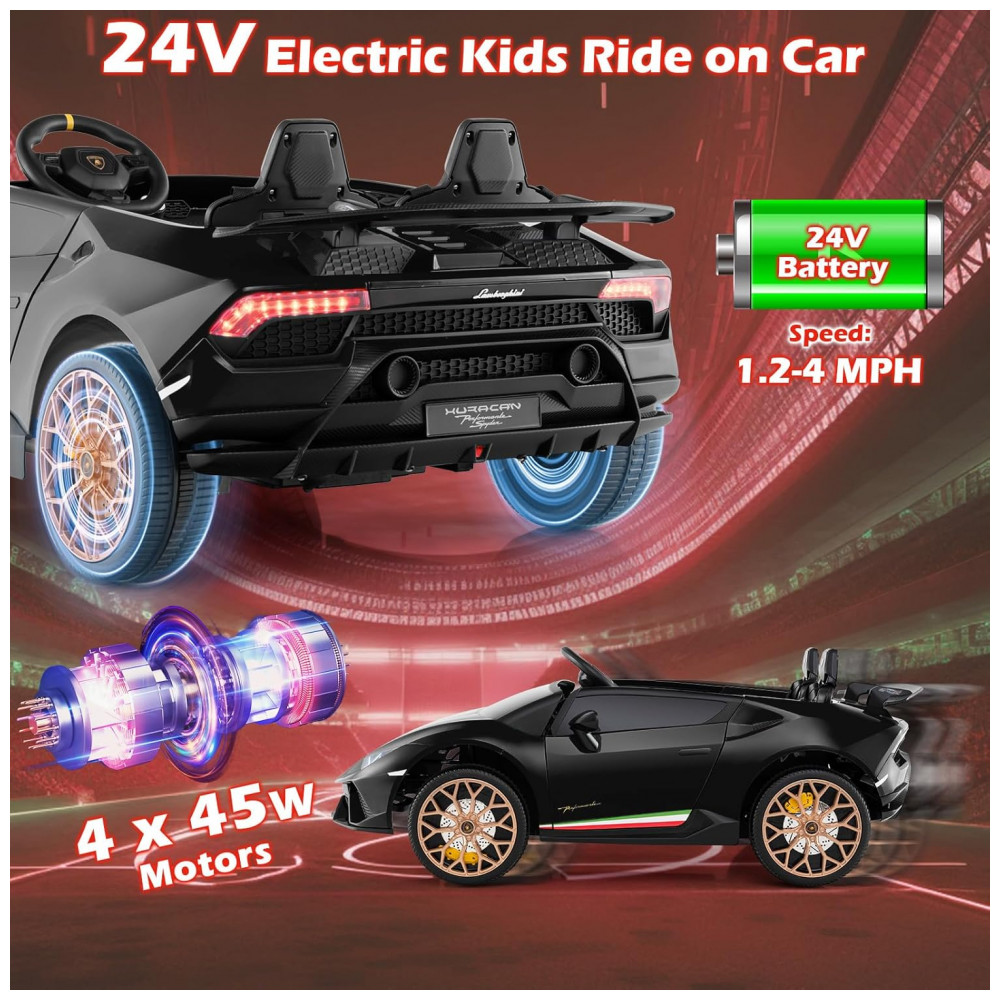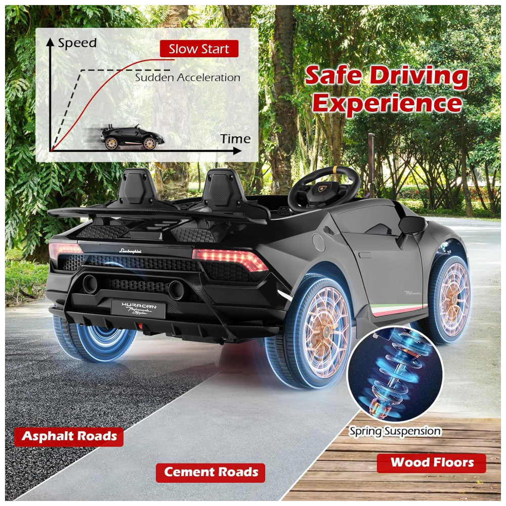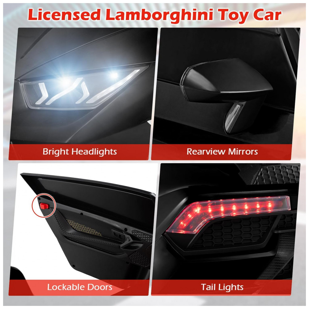 Carro Elétrico Infantil Lamborghini Licenciado 24V 4WD 2 Lugares Controle Remoto Luzes LED Música Bluetooth – Costzon S311 Preto