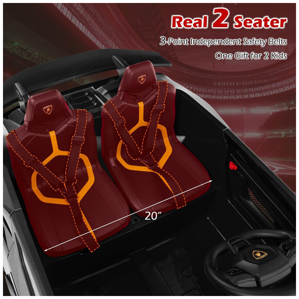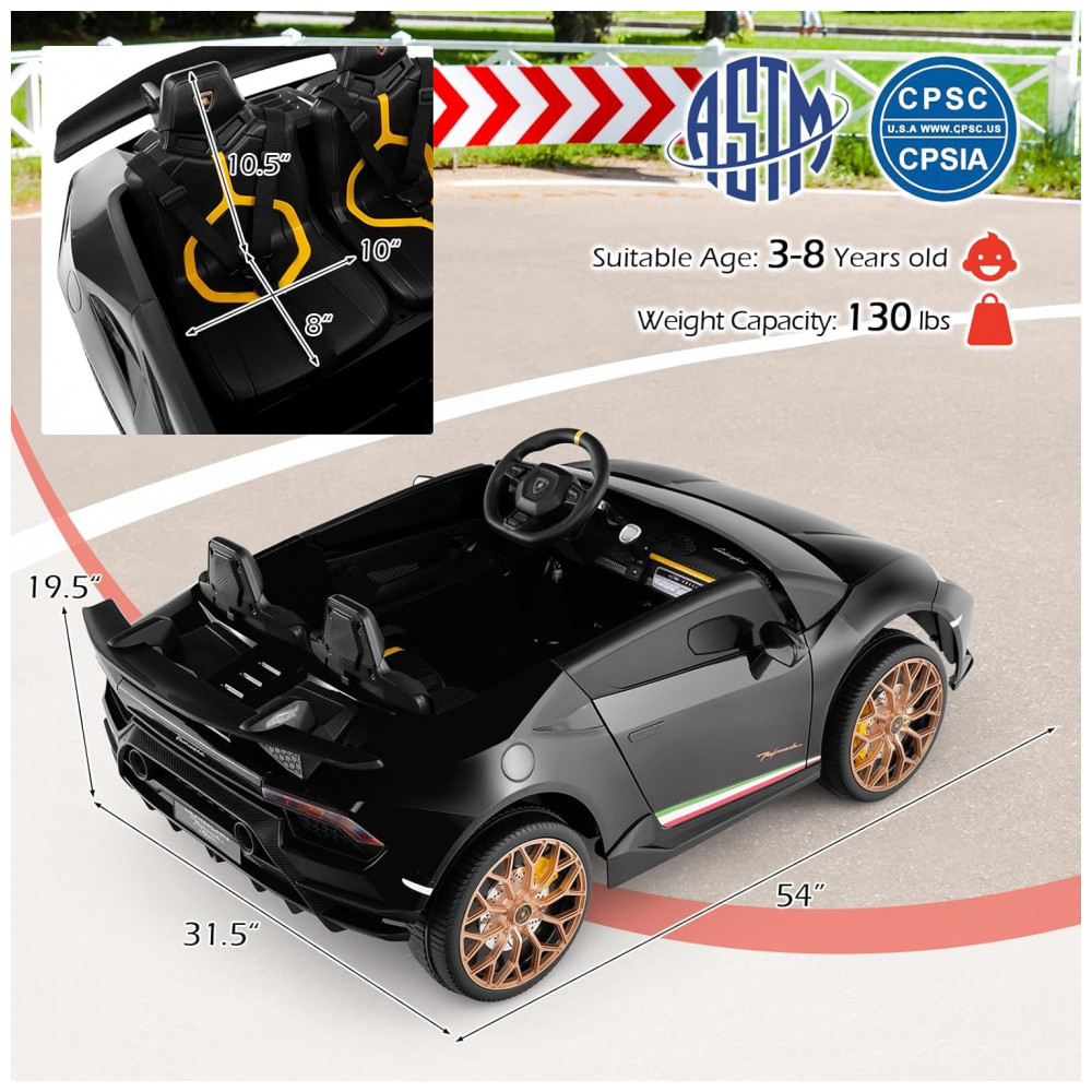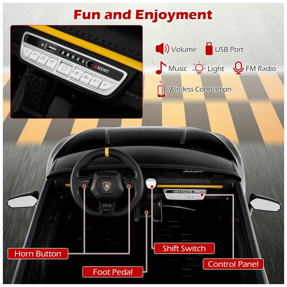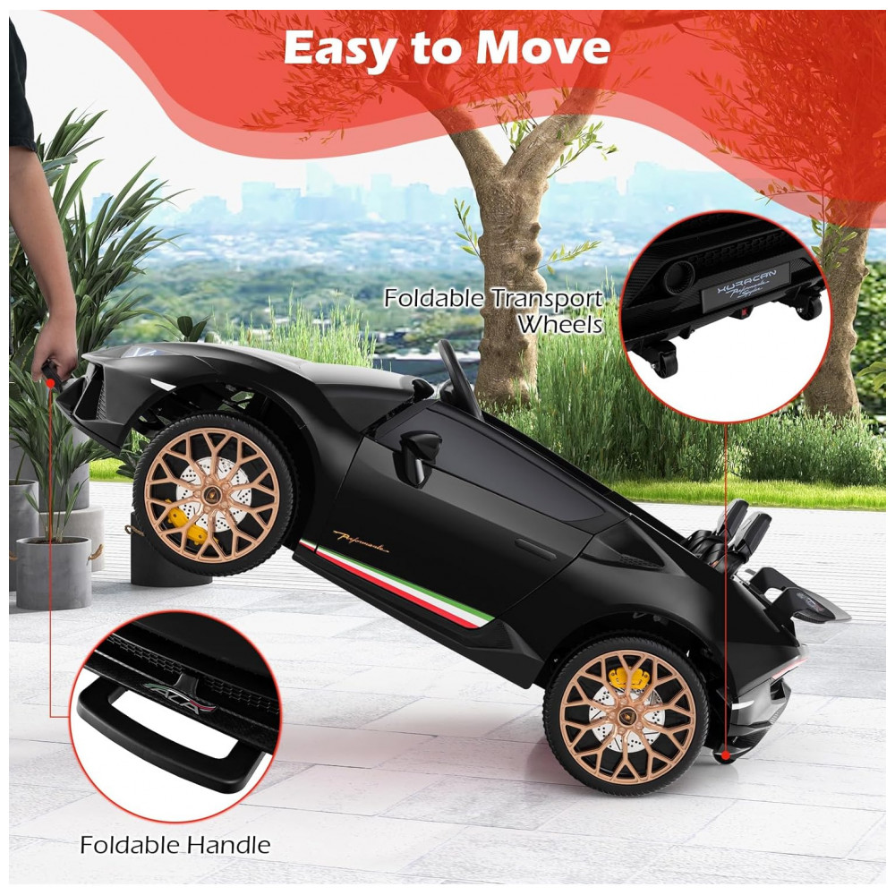 Carro Elétrico Infantil Lamborghini Licenciado 24V 4WD 2 Lugares Controle Remoto Luzes LED Música Bluetooth – Costzon S311 Preto