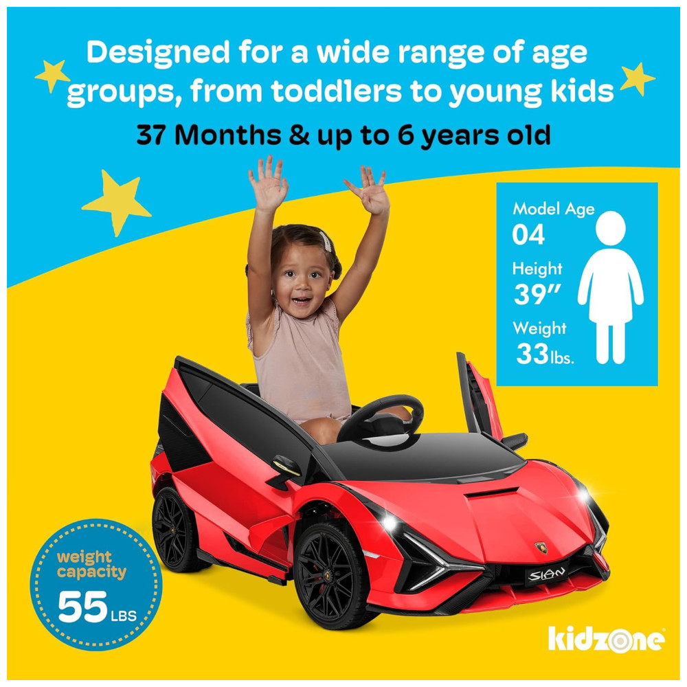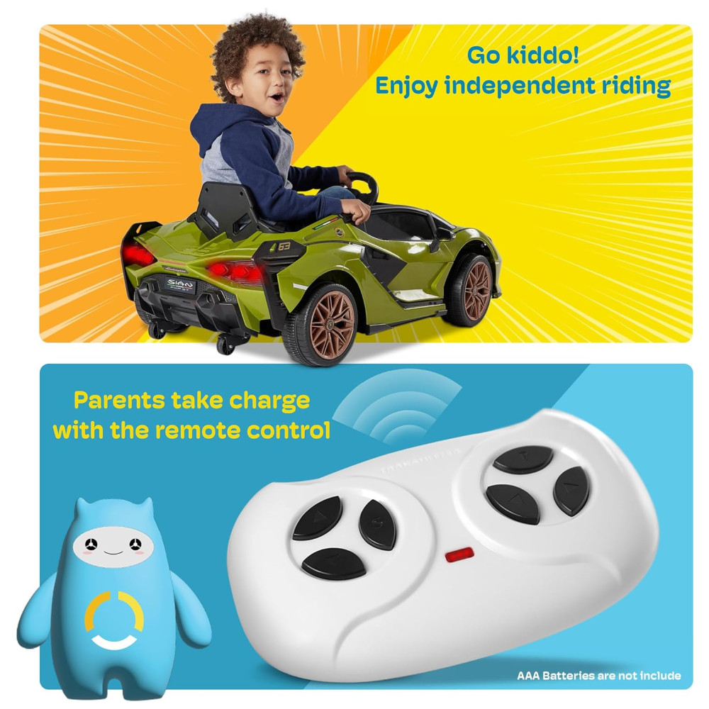 Este carro de passeio oficialmente licenciado da Lamborghini apresenta um design incrível, com faróis de LED, sons realistas de buzina e motor, além de portas hidráulicas que se abrem assim como no verdadeiro Lamborghini.