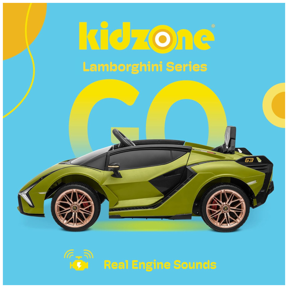 Carro Elétrico Infantil Lamborghini Sian Roadster com 2 Velocidades Controle dos Pais Som Faróis de LED e Portas Hidráulicas 12V Kidzone Verde e Dourado