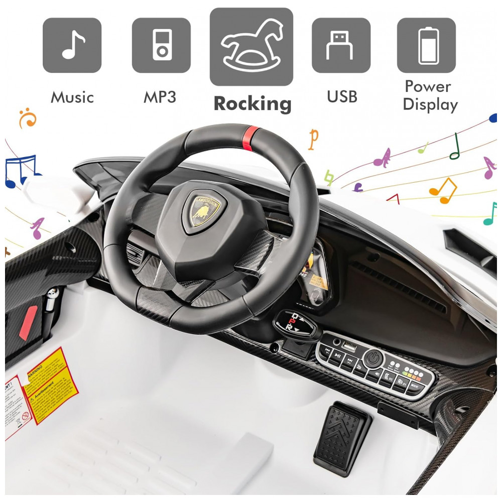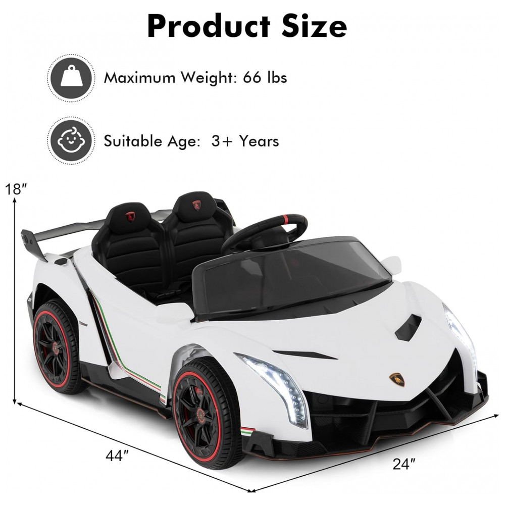 Carro Elétrico Infantil Licenciado 2 Lugares Lamborghini Veneno OLAKIDS Bege 12V 4WD Suspensão Controle Remoto Música USB MP3