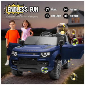 Carro Elétrico Infantil Licenciado 2 Lugares Land Rover Defender Letsgoride Azul 24V 4x100W com Controle Remoto Suspensão Som e LED