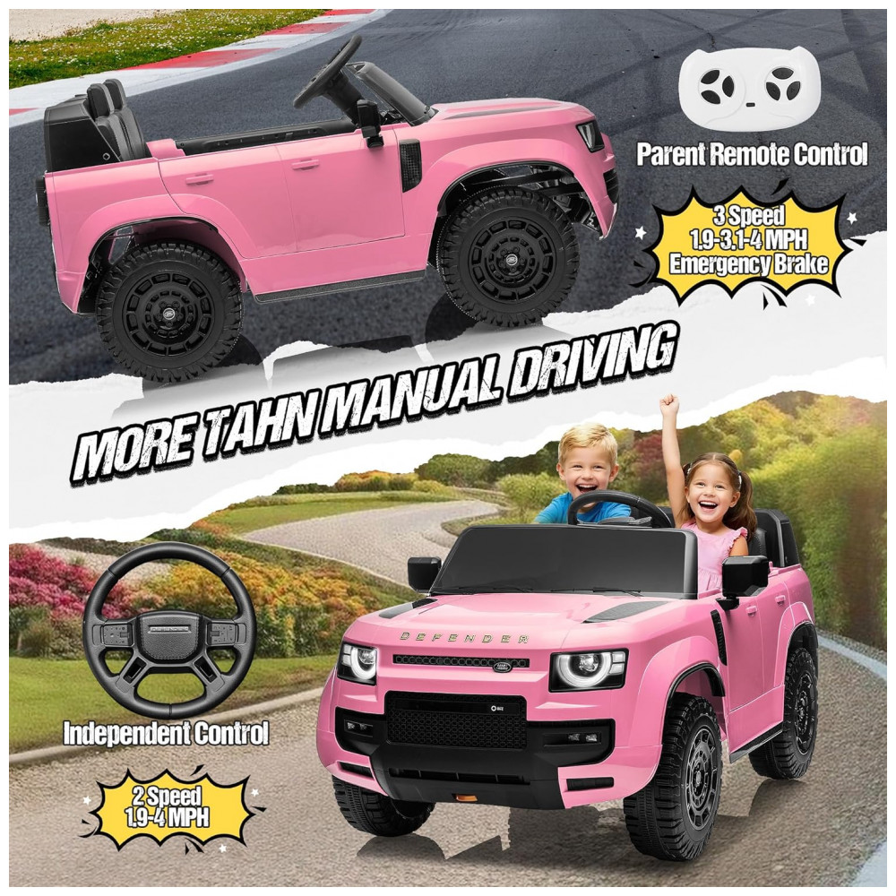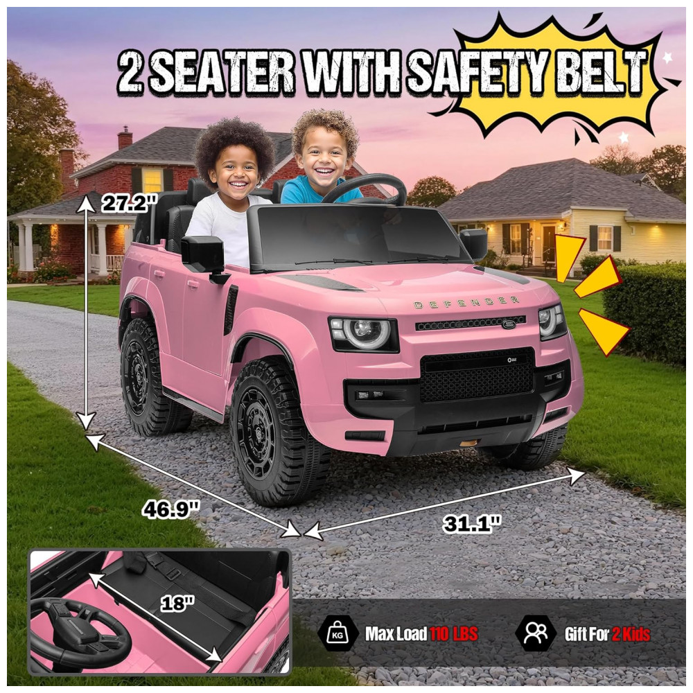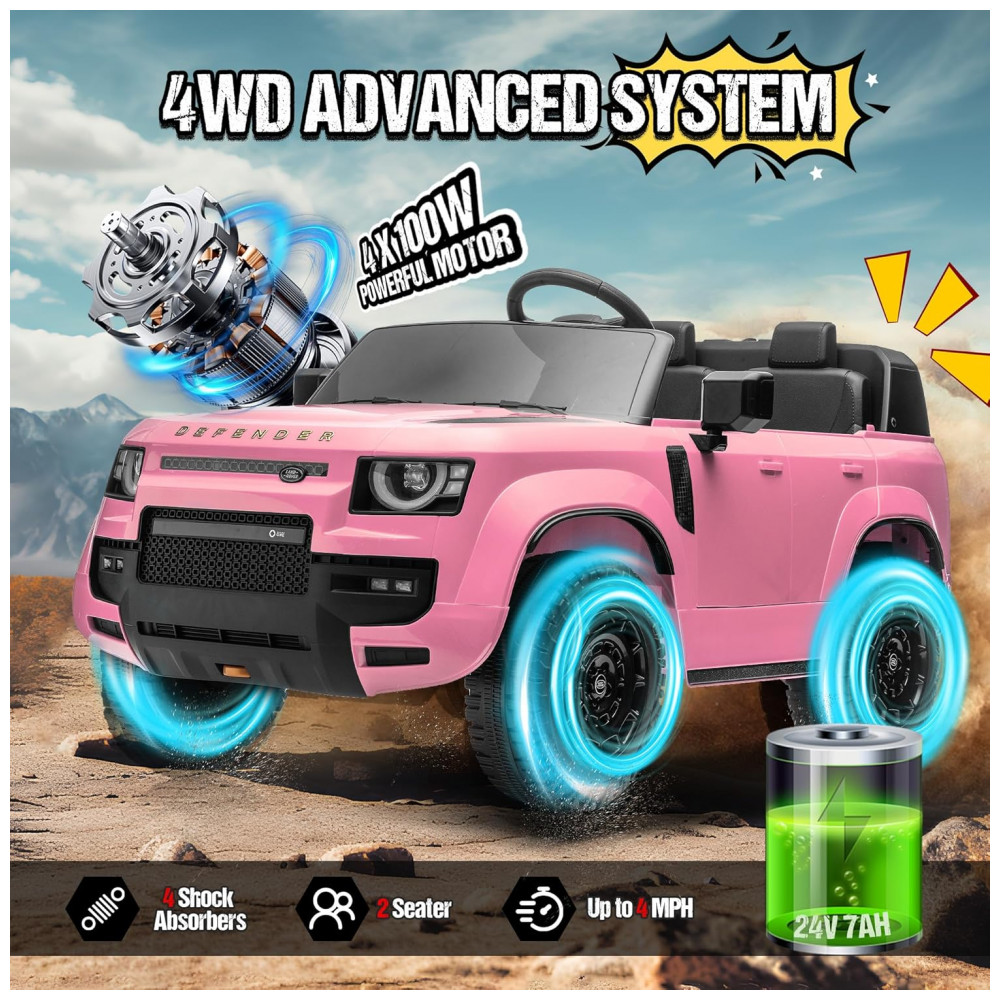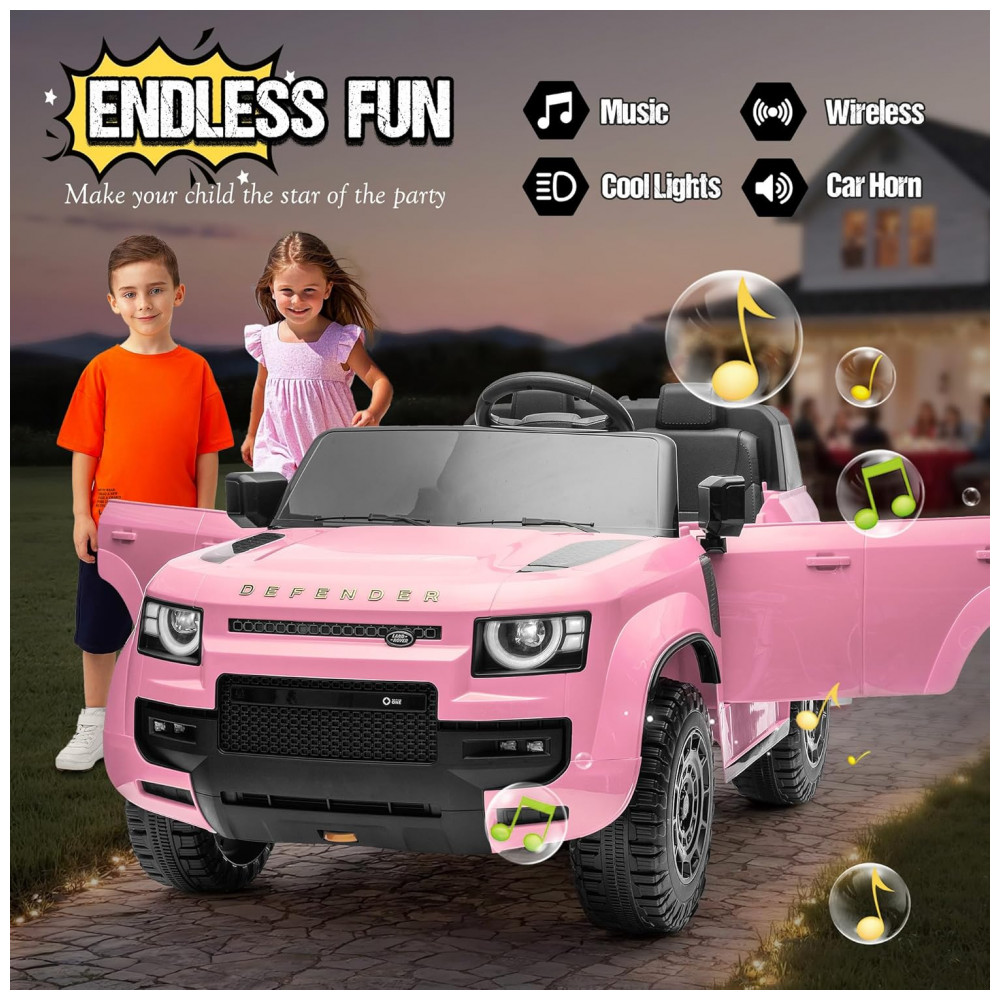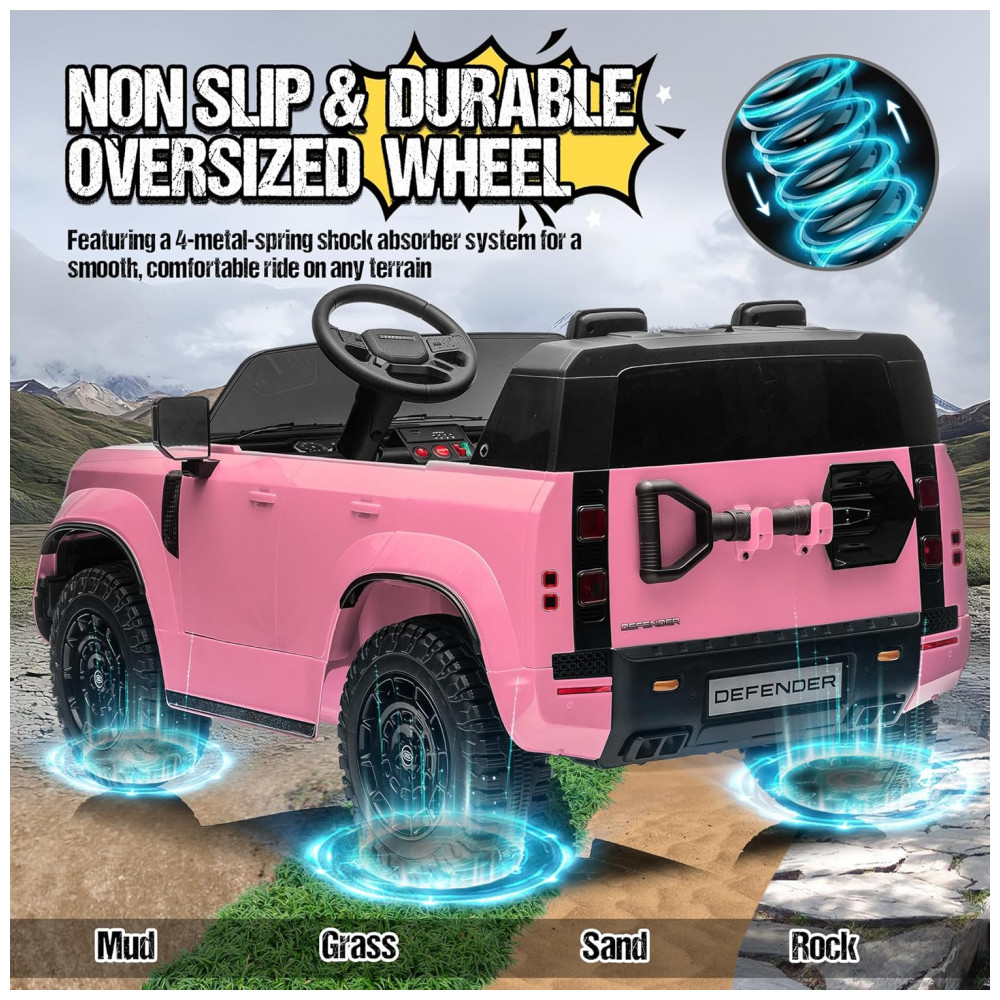 Carro Elétrico Infantil Licenciado 2 Lugares Land Rover Defender Letsgoride Rosa 24V 4x100W com Controle Remoto Suspensão Som e LED