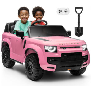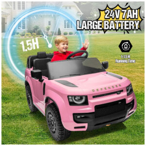 Carro Elétrico Infantil Licenciado 2 Lugares Land Rover Defender Letsgoride Rosa 24V 4x100W com Controle Remoto Suspensão Som e LED