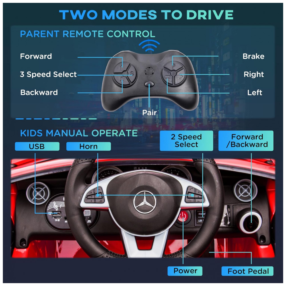 Carro Elétrico Infantil Licenciado Aosom Mercedes SLC 300 12V Vermelho com Controle Remoto Música Luzes LED e Suspensão – Para Crianças de 3 a 6 Anos