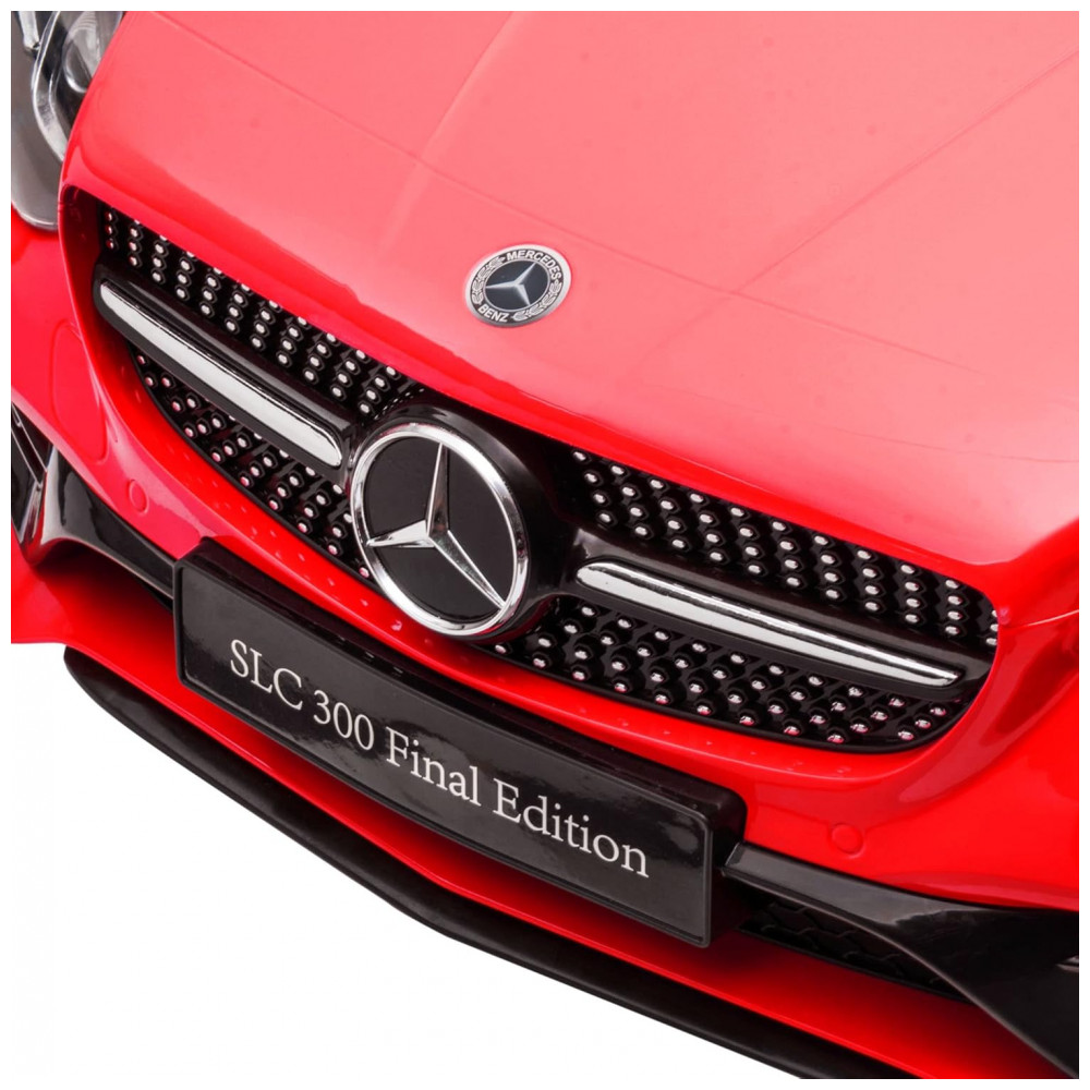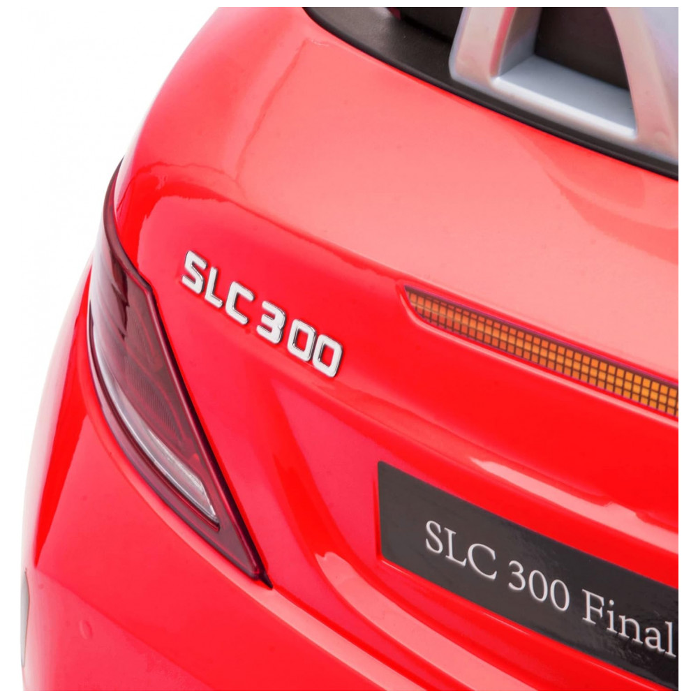 Para aumentar a diversão, o modelo conta com um painel com entradas USB, TF e auxiliar para conectar música, além de 8 músicas pré-instaladas e 7 histórias para entreter as crianças durante o passeio. As luzes LED frontais e traseiras realçam o design autêntico do Mercedes SLC 300, tornando cada viagem ainda mais especial.