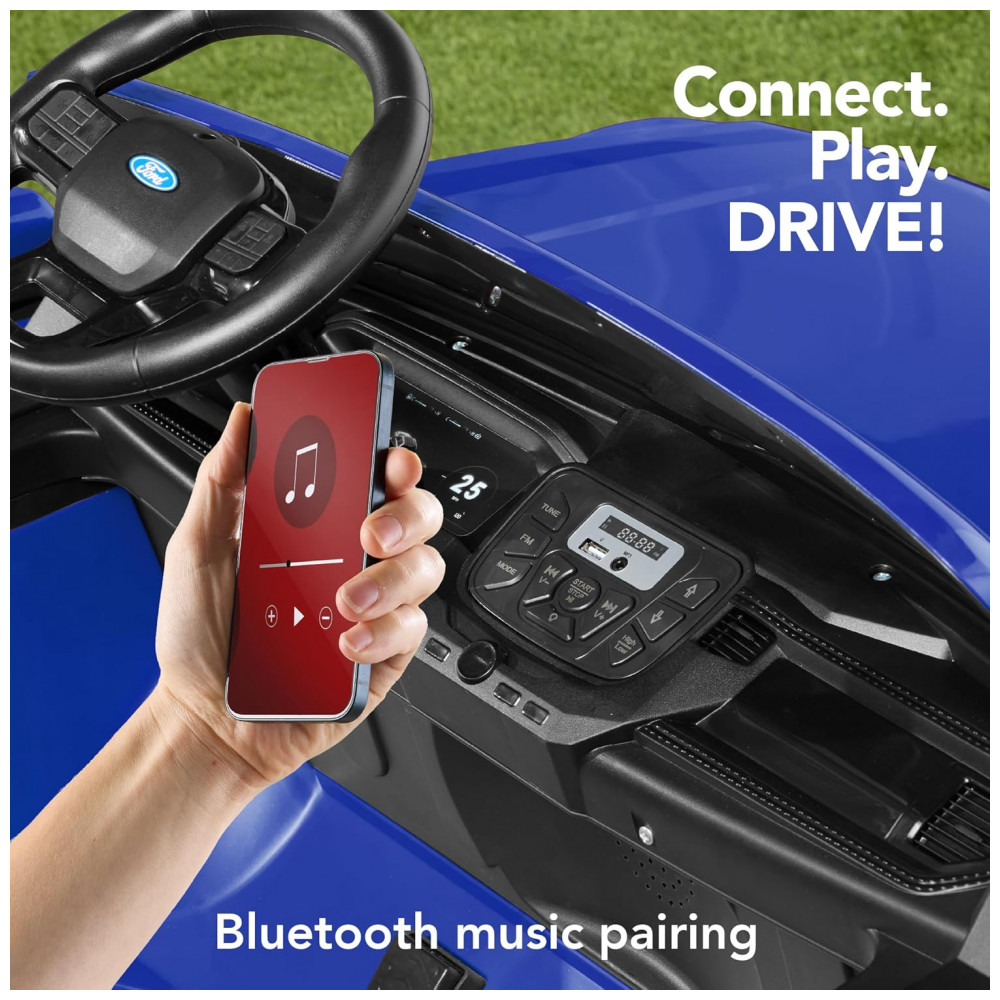 Você pode deixar a criança dirigir sozinha ou assumir o controle com o controle remoto dos pais, que possibilita guiar a direção e o controle de velocidade para segurança total. Enquanto isso, o sistema sonoro Bluetooth integrado oferece a possibilidade de ouvir as músicas favoritas durante as aventuras.
