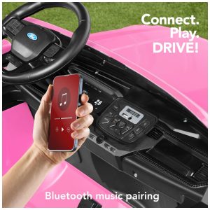 Você pode deixar a criança dirigir sozinha ou assumir o controle com o controle remoto dos pais, que possibilita guiar a direção e o controle de velocidade para segurança total. Enquanto isso, o sistema sonoro Bluetooth integrado oferece a possibilidade de ouvir as músicas favoritas durante as aventuras.