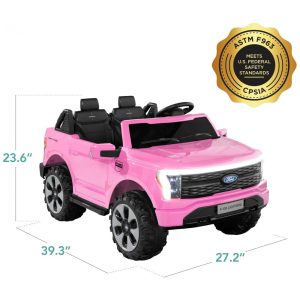 Carro Elétrico Infantil Licenciado Best Choice Products Ford F-150 Lightning 24V Rosa 2 Lugares com Controle Remoto e Bluetooth Capacidade de 60 kg