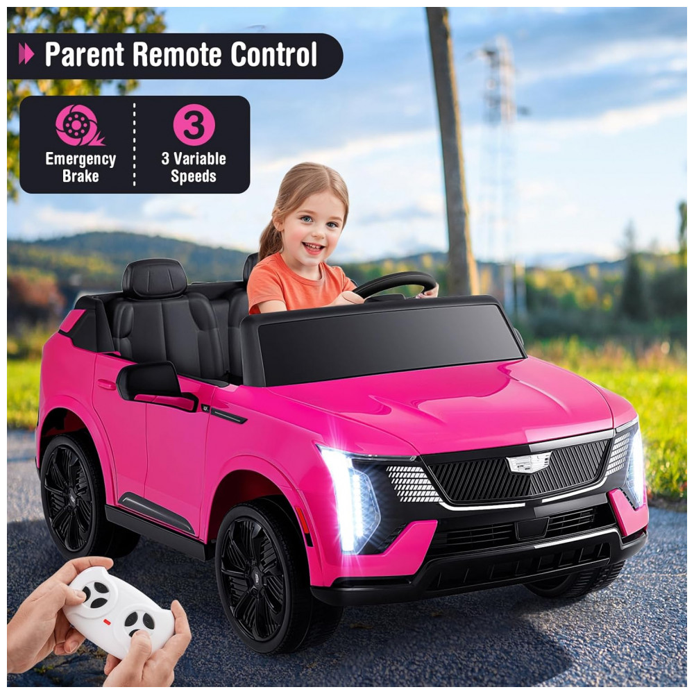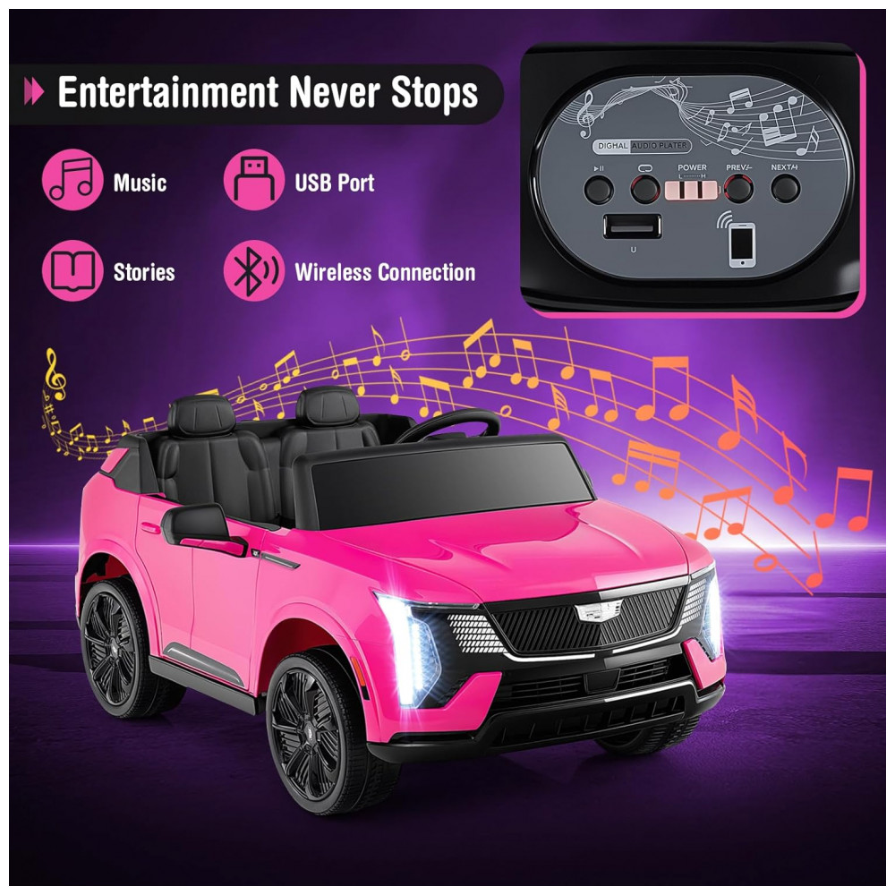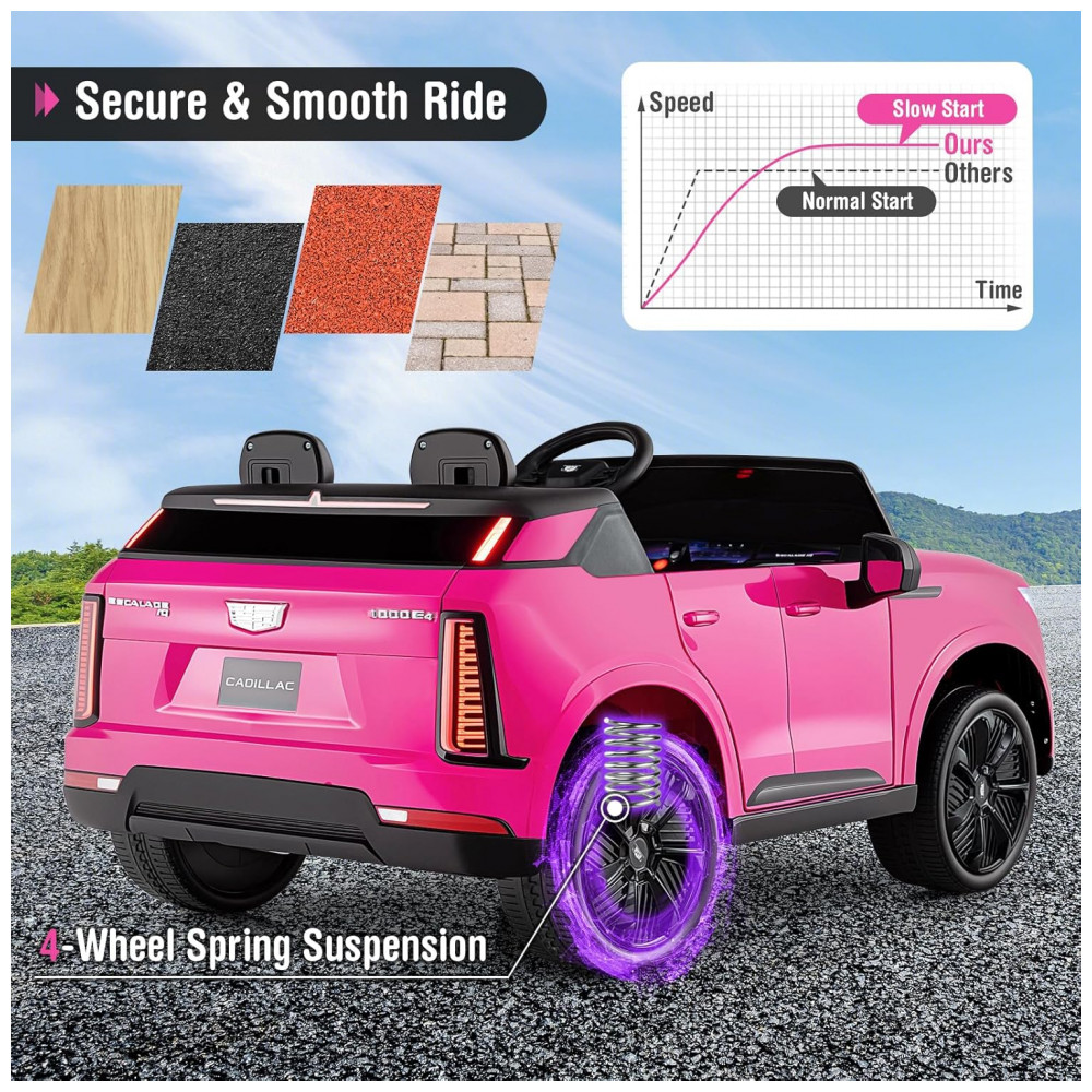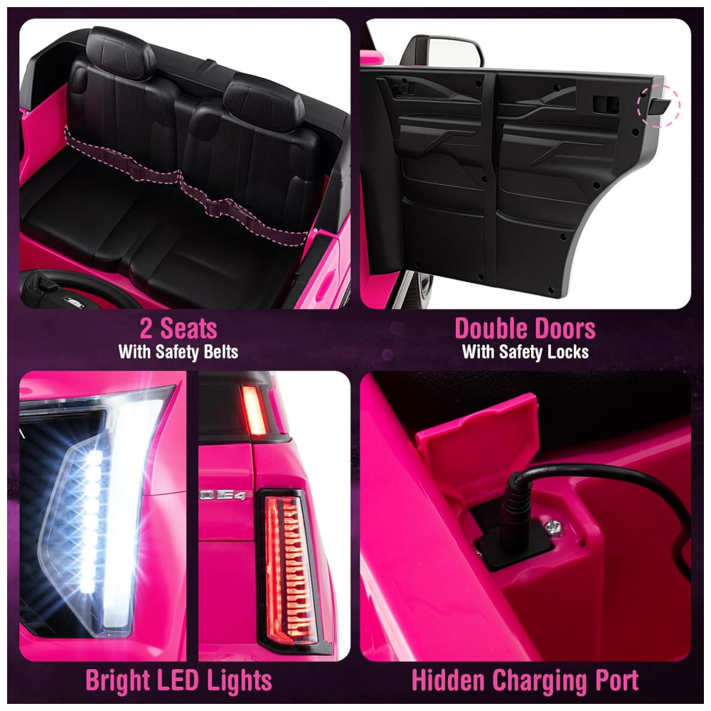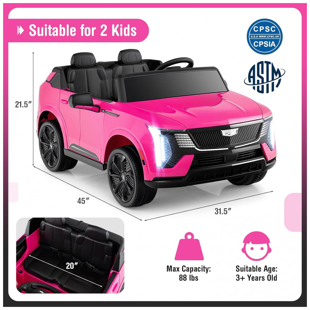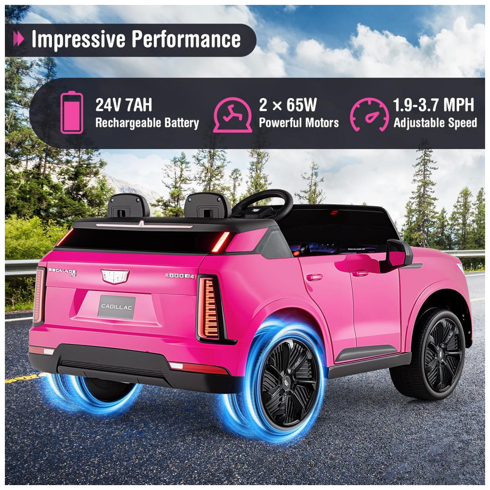 Carro Elétrico Infantil Licenciado Costzon Cadillac 24V 2 Lugares Controle Remoto Suspensão 4 Rodas Música Luzes LED Rosa