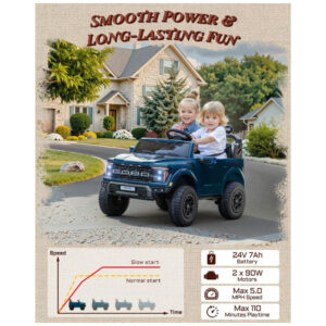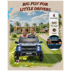 O Carro Elétrico Infantil com licença oficial Ford F-150 Raptor 24V é uma réplica oficial da icônica caminhonete Ford, com detalhes autênticos como grade frontal exclusiva Raptor, faróis LED funcionais, buzina realista, portas que travam e baú traseiro para armazenamento. Perfeito para crianças que desejam uma experiência realista e cheia de estilo.