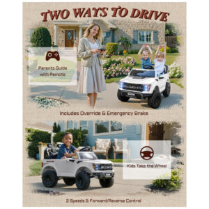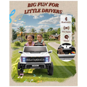 O Carro Elétrico Infantil com licença oficial Ford F-150 Raptor 24V é uma réplica oficial da icônica caminhonete Ford, com detalhes autênticos como grade frontal exclusiva Raptor, faróis LED funcionais, buzina realista, portas que travam e baú traseiro para armazenamento. Perfeito para crianças que desejam uma experiência realista e cheia de estilo.