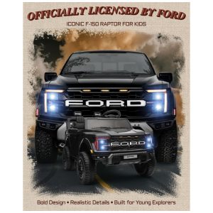 O Carro Elétrico Infantil com licença oficial Ford F-150 Raptor 24V é uma réplica oficial da icônica caminhonete Ford, com detalhes autênticos como grade frontal exclusiva Raptor, faróis LED funcionais, buzina realista, portas que travam e baú traseiro para armazenamento. Perfeito para crianças que desejam uma experiência realista e cheia de estilo.