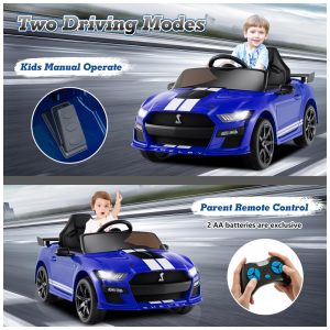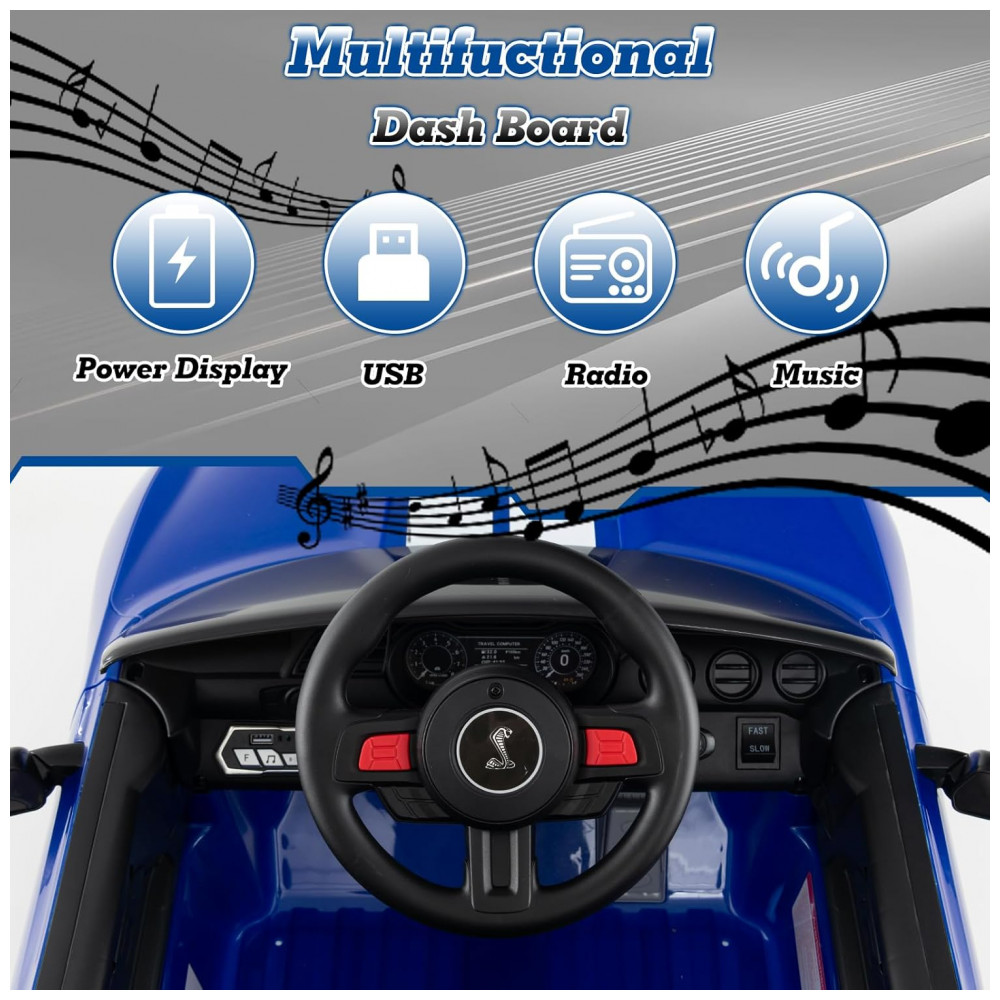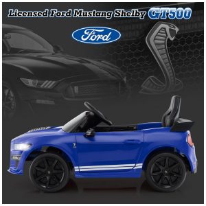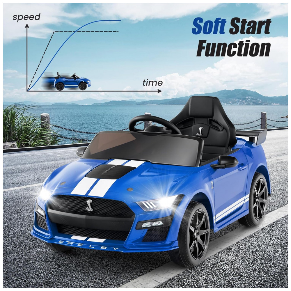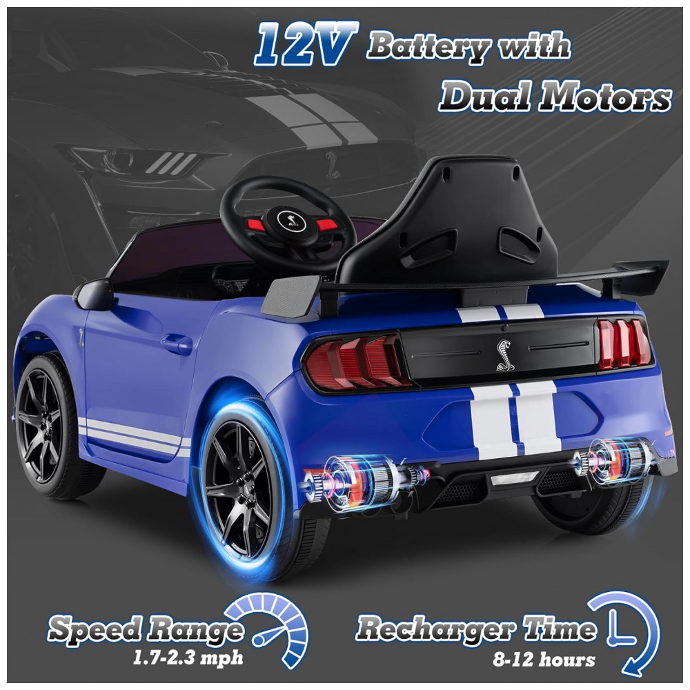 Carro Elétrico Infantil Licenciado Ford Mustang Shelby GT500 OLAKIDS Azul 12V 2 Velocidades Controle Remoto LED USB Rádio Música
