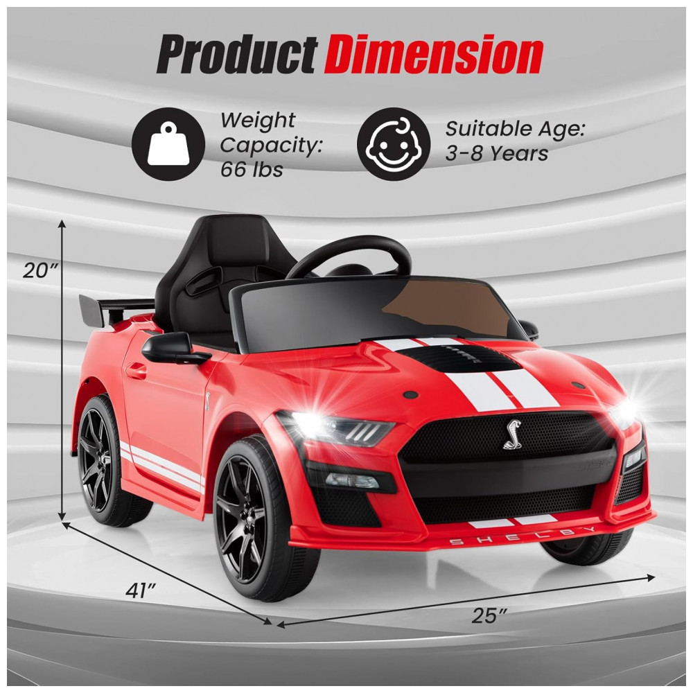 Carro Elétrico Infantil Licenciado Ford Mustang Shelby GT500 OLAKIDS Vermelho 12V 2 Velocidades Controle Remoto LED USB Rádio Música
