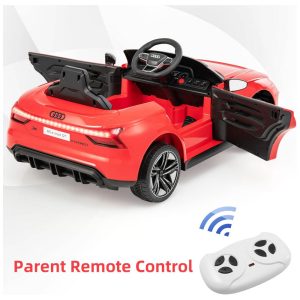 Carro Elétrico Infantil Licenciado INFANS Audi RS e-tron GT 12V Controle Remoto para Pais Suspensão 4 Rodas LED Música USB Vermelho