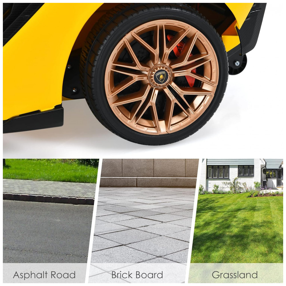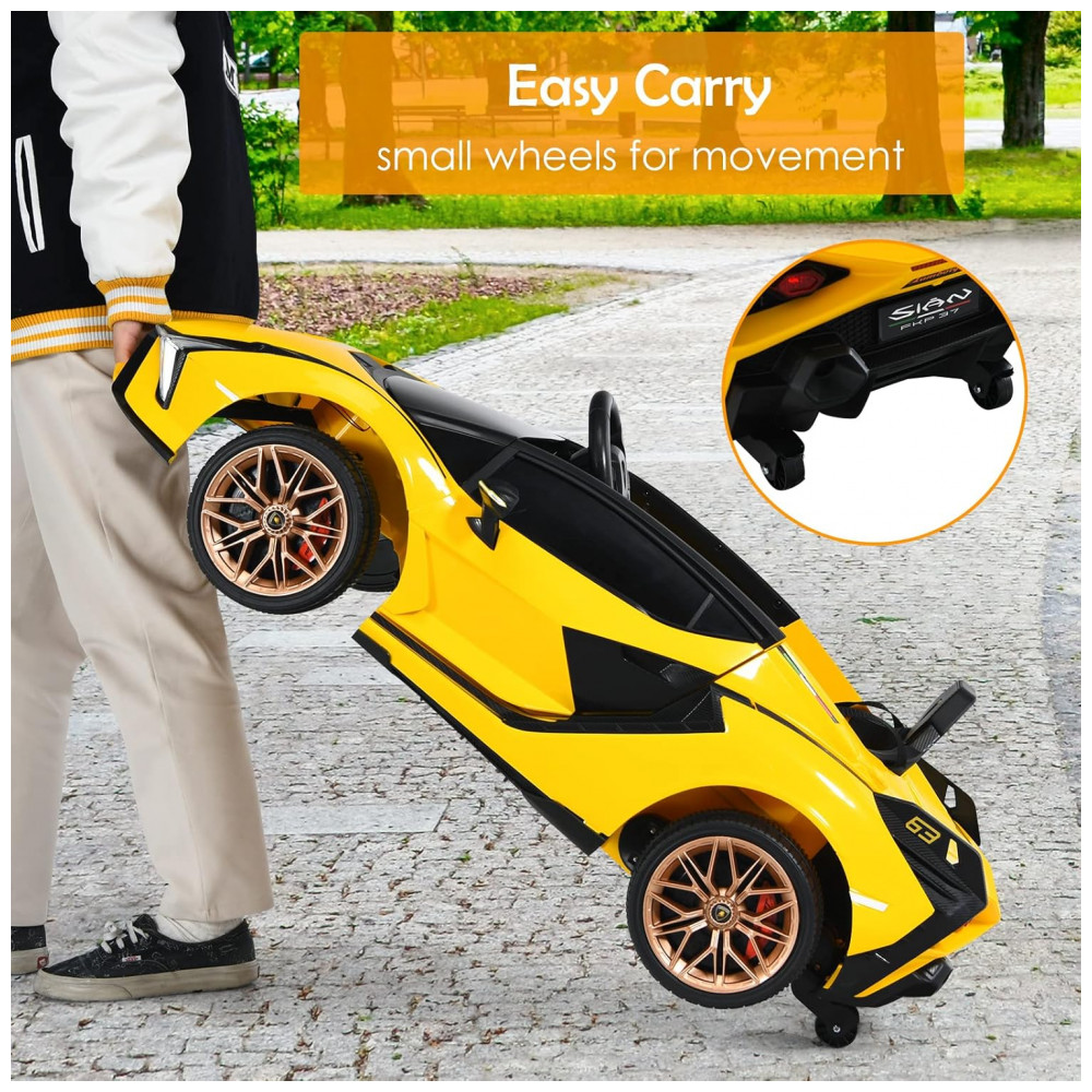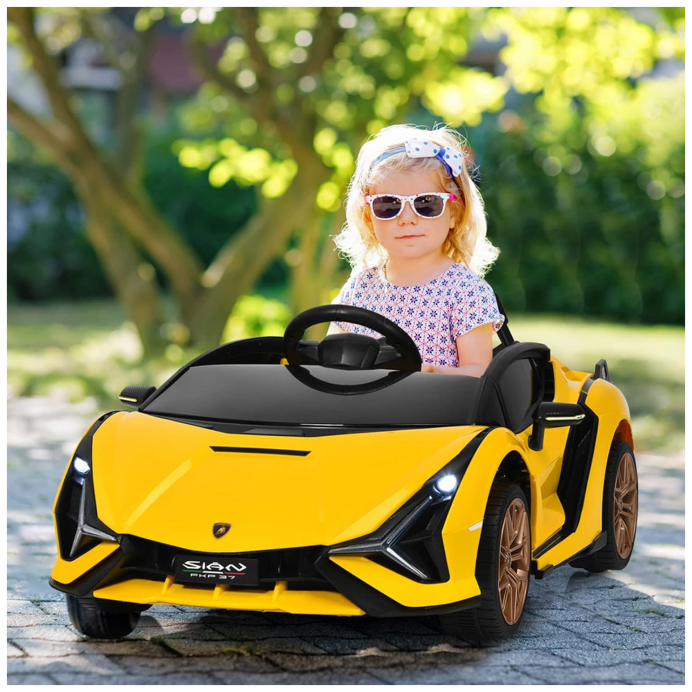 Carro Elétrico Infantil Licenciado Lamborghini SIAN OLAKIDS Preto/Amarelo 12V com Controle Remoto 2 Velocidades Suspensão e Bluetooth