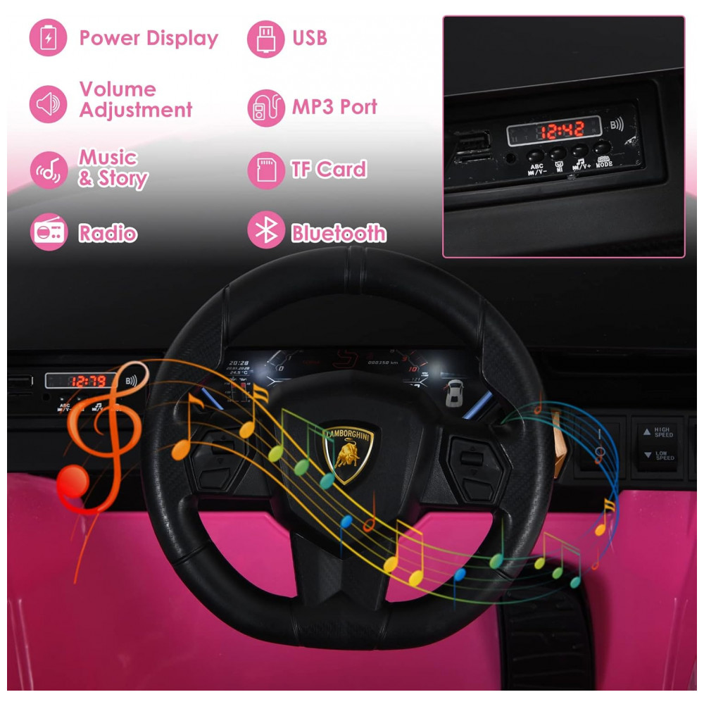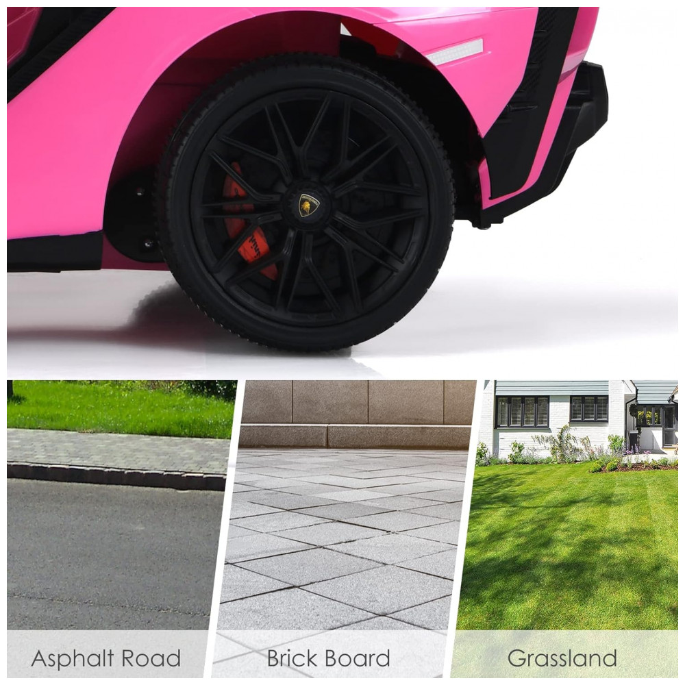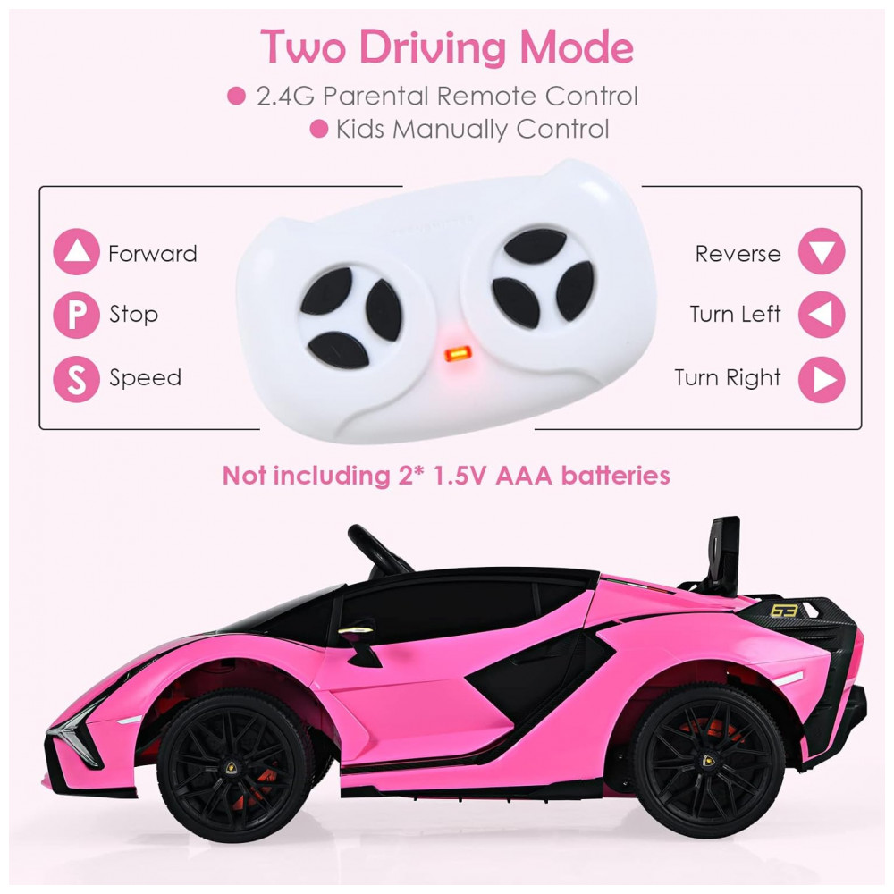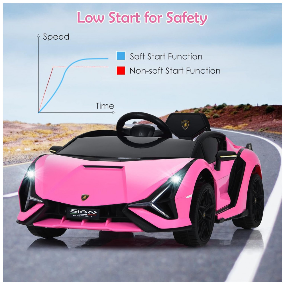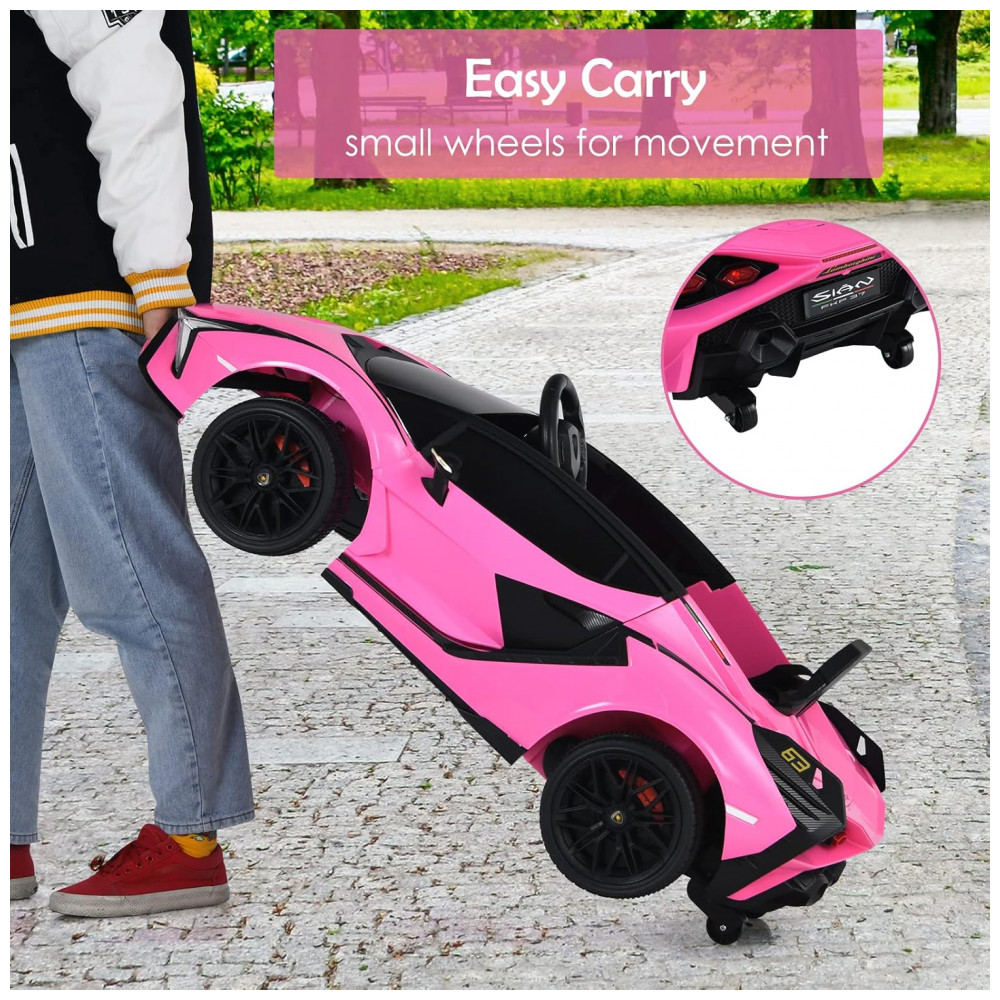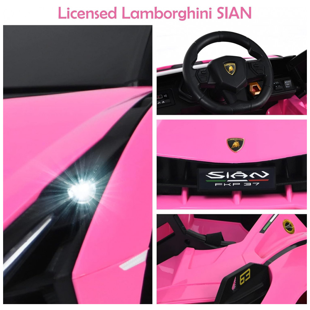 Carro Elétrico Infantil Licenciado Lamborghini SIAN OLAKIDS Preto/Rosa 12V com Controle Remoto 2 Velocidades Suspensão e Bluetooth