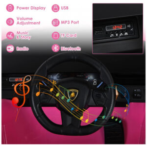 Carro Elétrico Infantil Licenciado Lamborghini SIAN OLAKIDS Preto/Rosa 12V com Controle Remoto 2 Velocidades Suspensão e Bluetooth