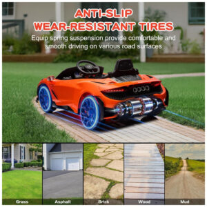 O carro elétrico infantil McLaren765LT licenciado da MUKIDY reproduz detalhes realistas, incluindo faróis em LED, sons personalizados e design fiel ao modelo esportivo em escala 1:1. Desenvolvido em plástico resistente e atóxico certificado ASTM, acomoda uma criança de até 29,9 kg, com assento largo, cinto de segurança ajustável e portas com travamento. Possui suspensão por molas, pneus em polipropileno antiderrapantes e sistema de partida suave para aceleração segura.