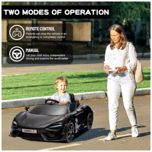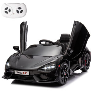 Carro Elétrico Infantil McLaren765LT MUKIDY Preto 12V Controle Remoto Música Luzes LED 3 Velocidades Cinto Segurança Modelo Licenciado