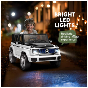 O Carro Elétrico Infantil Mercedes-Benz Forever Source foi desenvolvido para proporcionar uma experiência realista de condução, aliando tecnologia, segurança e conforto. Licenciado, exibe design luxuoso EQG, com detalhes fieis ao modelo original e acabamento sofisticado. Seu sistema duplo de controle permite que a criança dirija manualmente ou que os pais conduzam via controle remoto, garantindo máxima segurança. Equipado com recursos como iluminação em LED, reprodutor de música e histórias, conexão USB e buzina, o produto oferece entretenimento variado. O assento espaçoso e o cinto de segurança de três pontos favorecem o conforto e a proteção durante o uso, sendo indicado para crianças de 37 a 96 meses (aproximadamente 3 a 8 anos), até 30 kg. A suspensão com amortecedores de mola absorve impactos, tornando o passeio mais suave em diferentes tipos de terreno.
