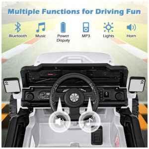 Carro Elétrico Infantil OLAKIDS Branco 12V Controle Remoto Jeep LED Bluetooth 2 Velocidades Suspensão Música USB MP3 3-8 Anos