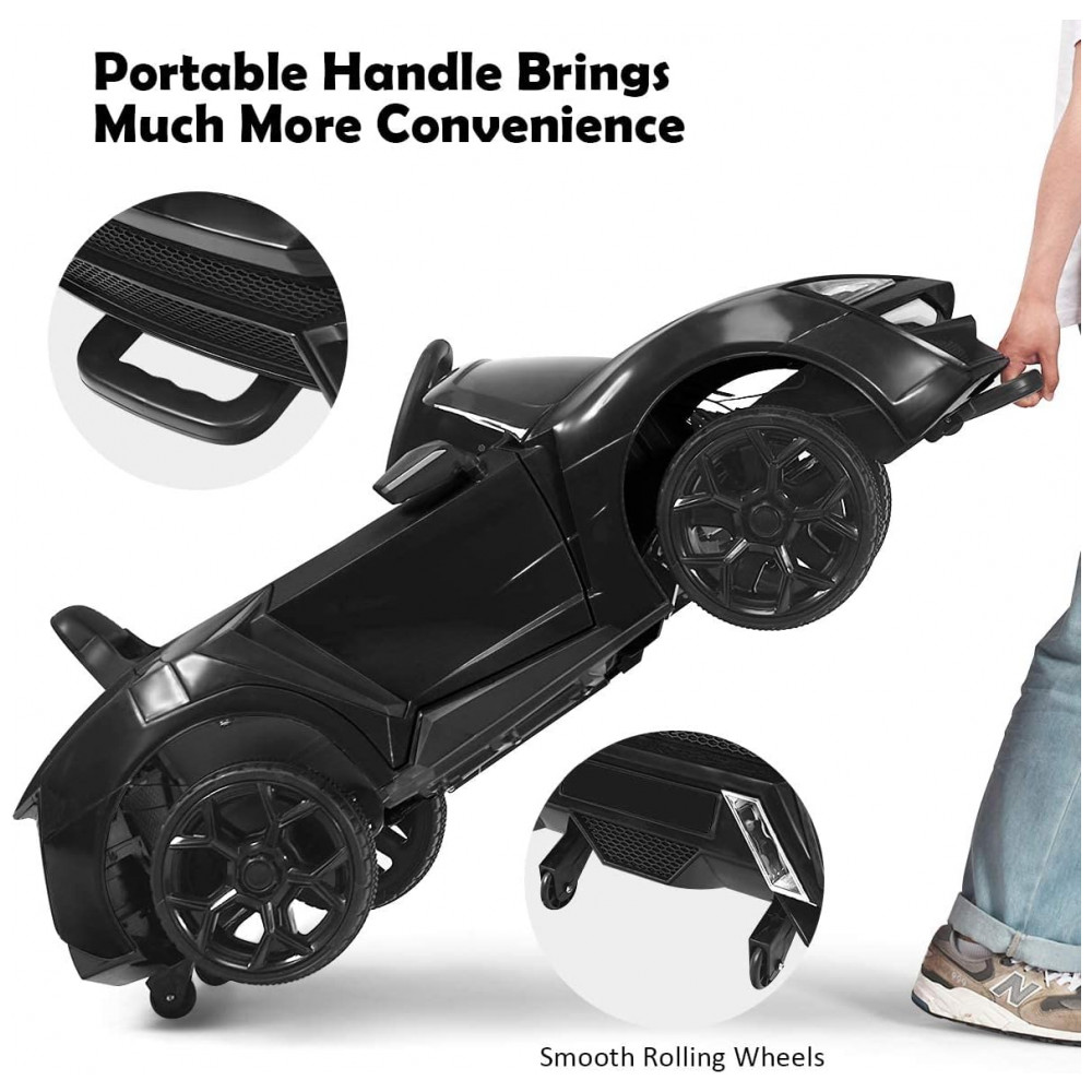 Carro Elétrico Infantil OLAKIDS Preto 12V 4 Rodas Suspensão Porta Dupla Controle Remoto LED 3 Velocidades Música USB TF