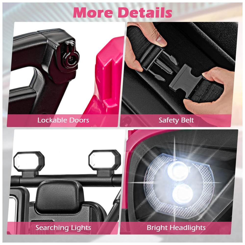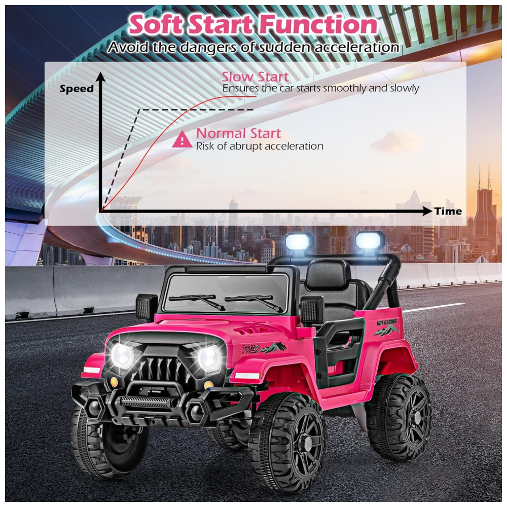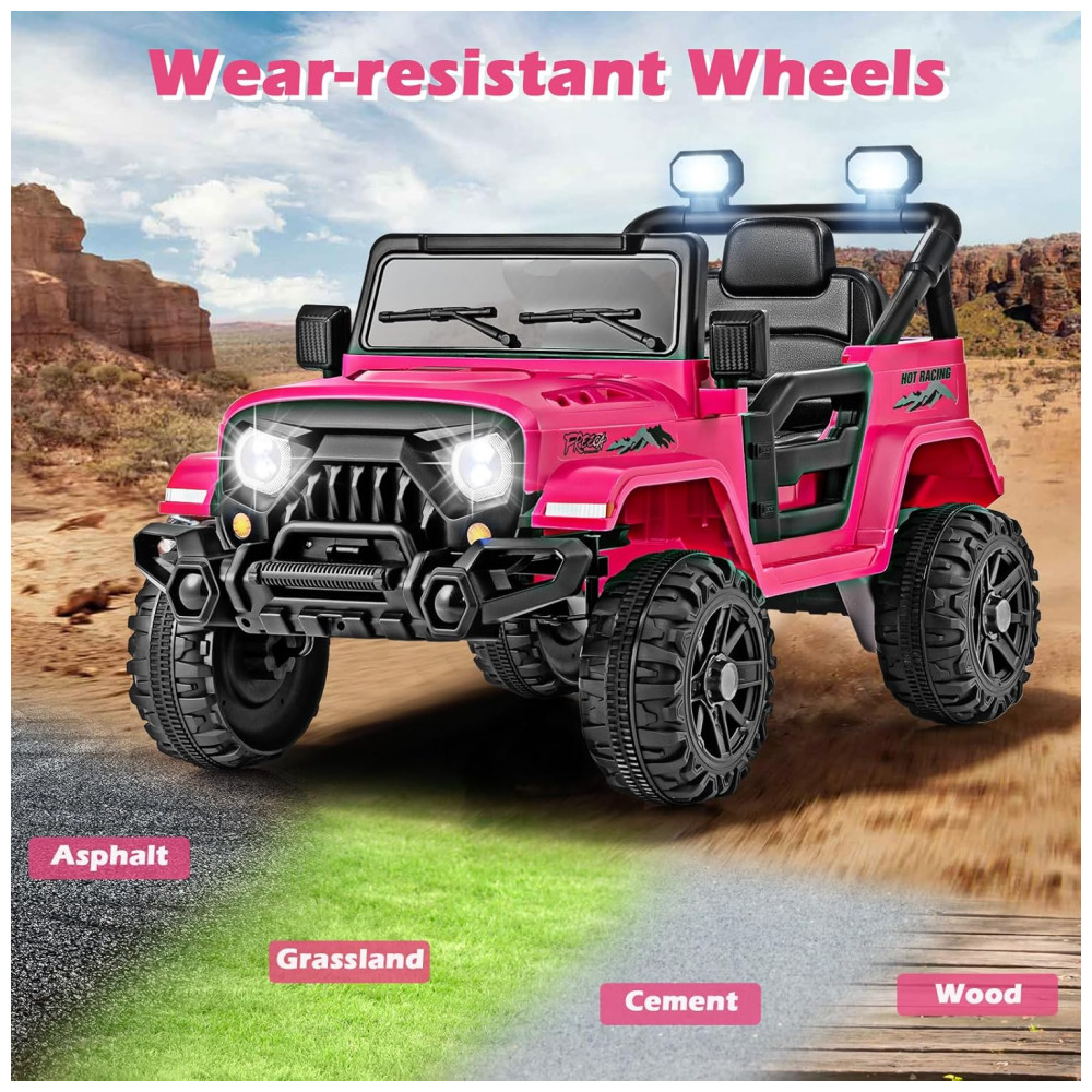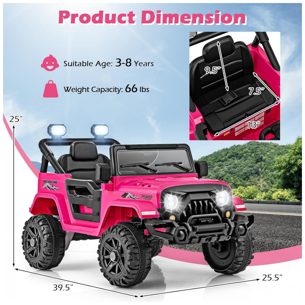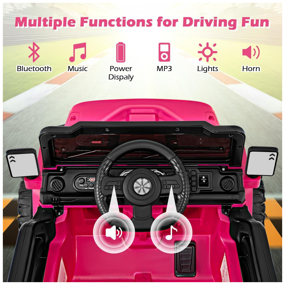 Carro Elétrico Infantil OLAKIDS Rosa 12V Controle Remoto Jeep LED Bluetooth 2 Velocidades Suspensão Música USB MP3 3-8 Anos