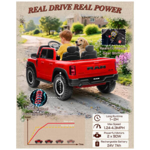 Este carro elétrico infantil RAM 1500 24V licenciado oficialmente oferece uma experiência realista com rodas robustas, câmbio manual funcional…