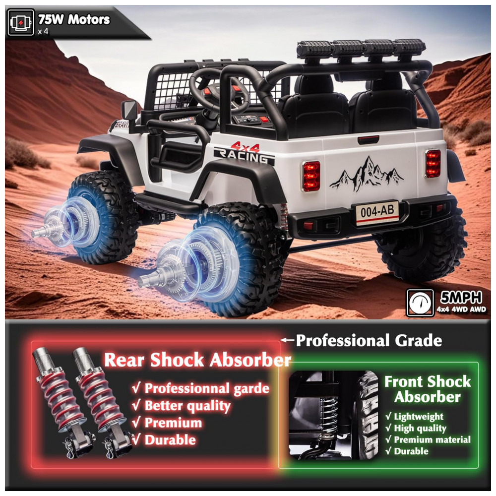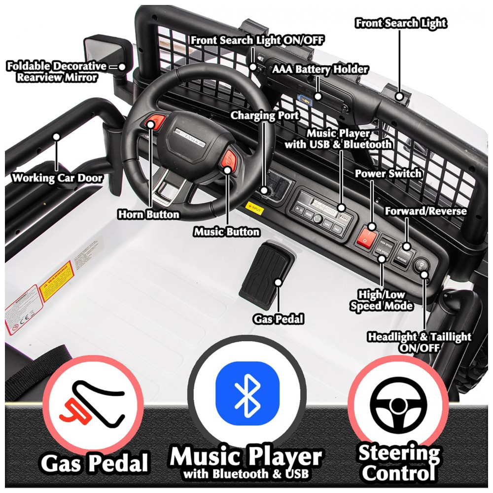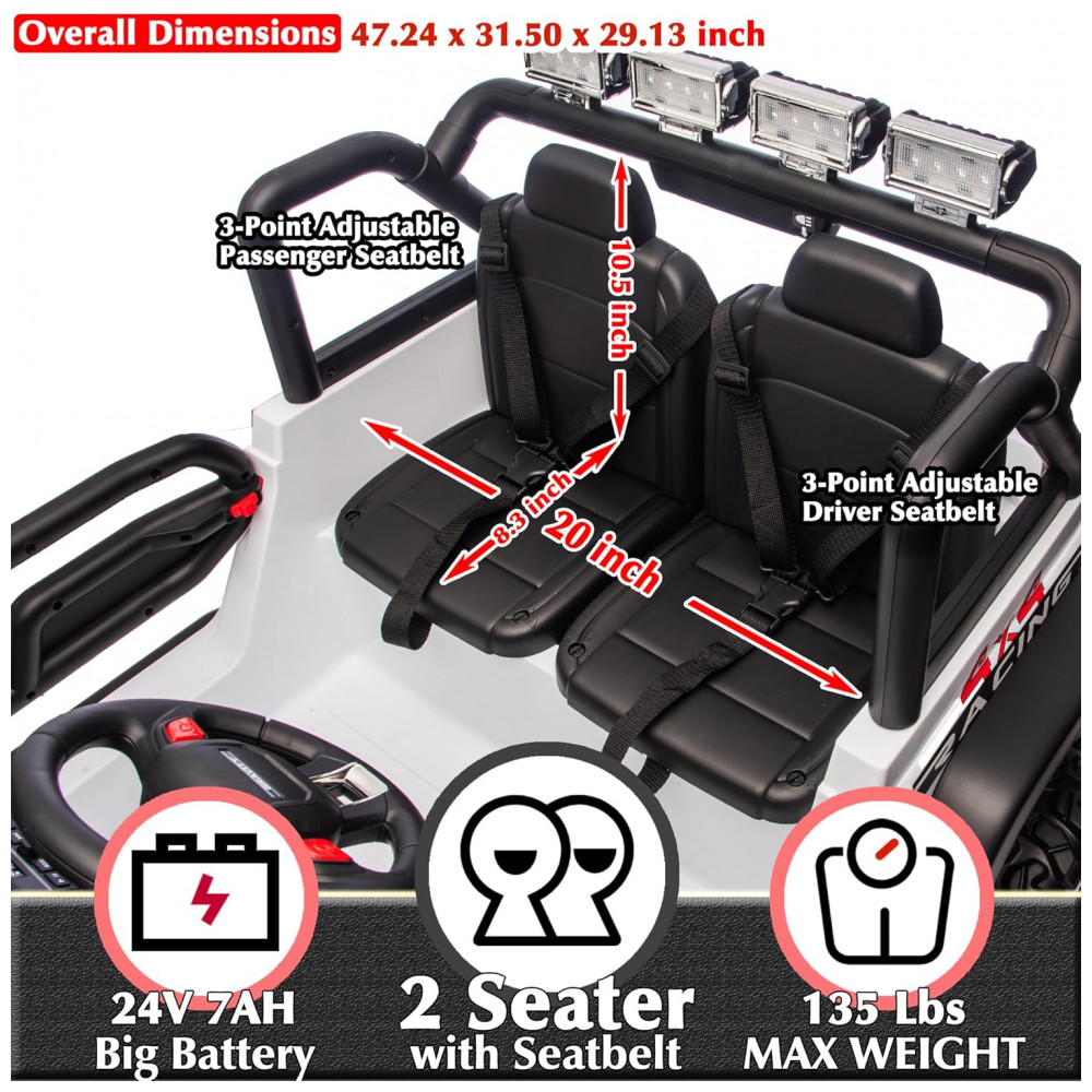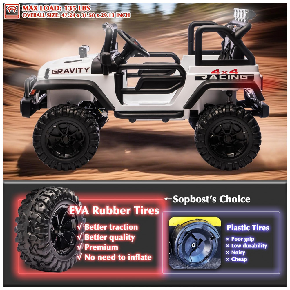 Carro Elétrico Infantil Sopbost Branco 24V 2 Lugares 4 Motores 4WD Pneus EVA Controle Bluetooth LED Off-Road