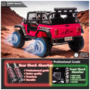 Carro Elétrico Infantil Sopbost Rosa 24V 2 Lugares 4 Motores 4WD Pneus EVA Controle Bluetooth LED Off-Road