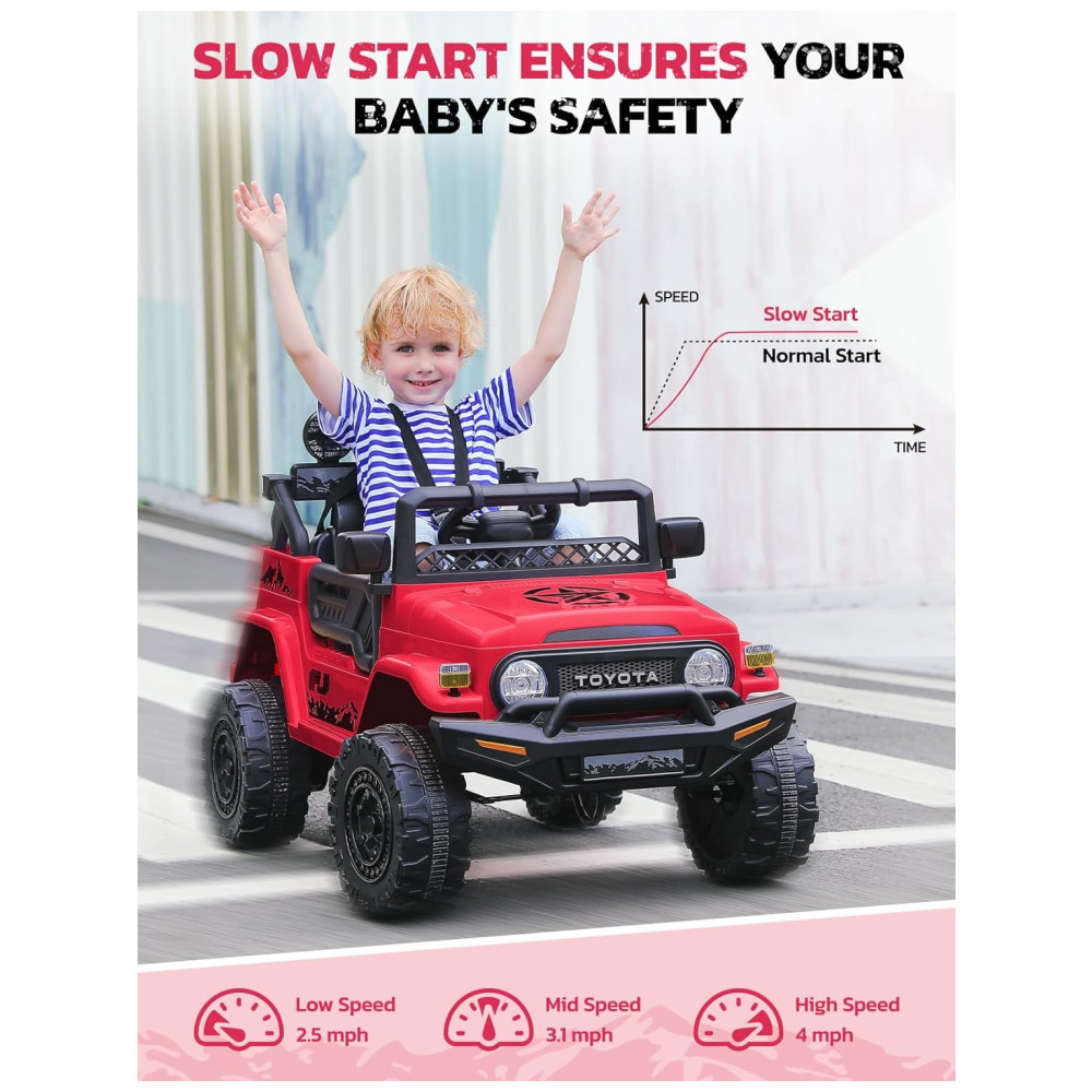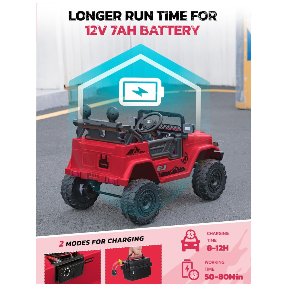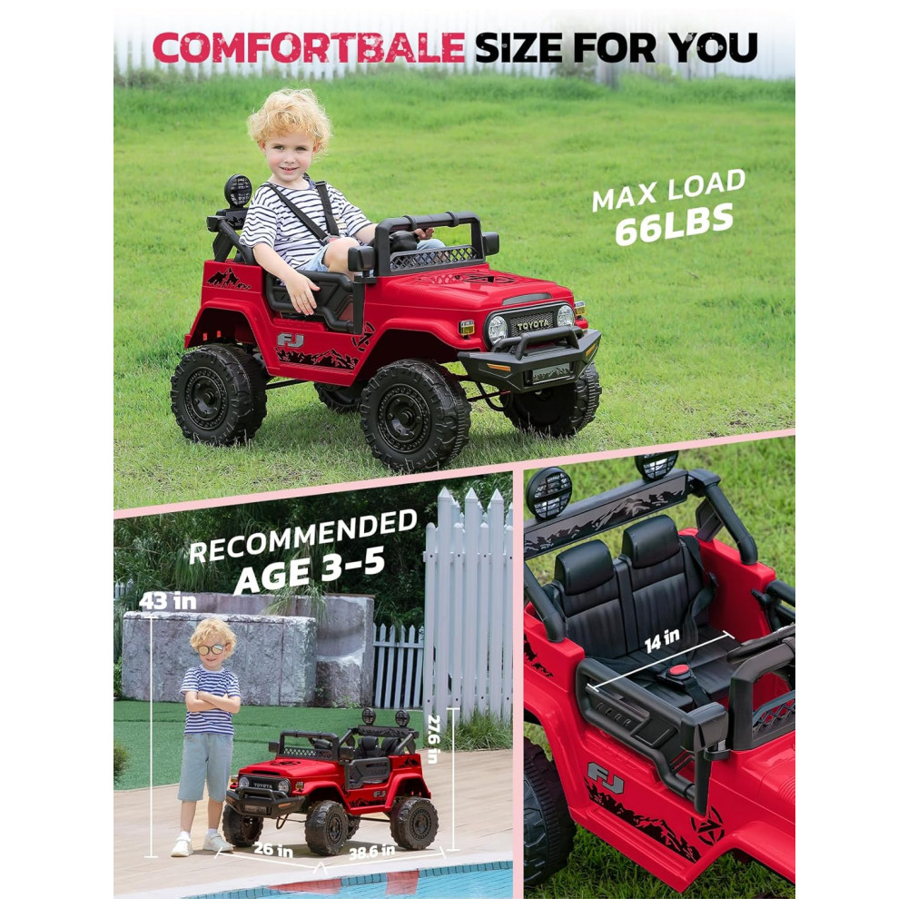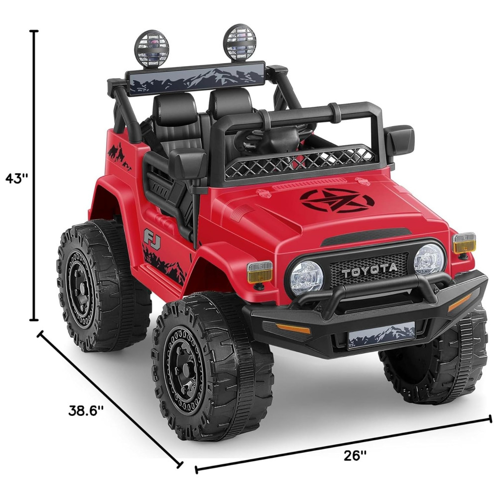 Carro Elétrico Infantil Toyota FJ40 a Bateria 12V com Luzes MP3 3 Velocidades ELEMARA Vermelho