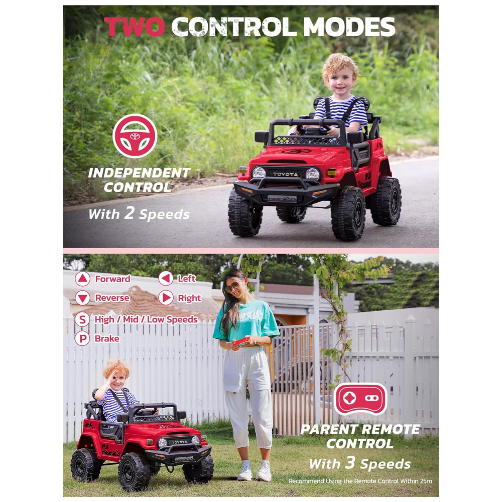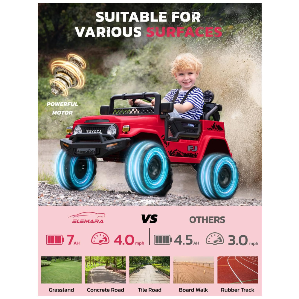Carro Elétrico Infantil Toyota FJ40 a Bateria 12V com Luzes MP3 3 Velocidades ELEMARA Vermelho