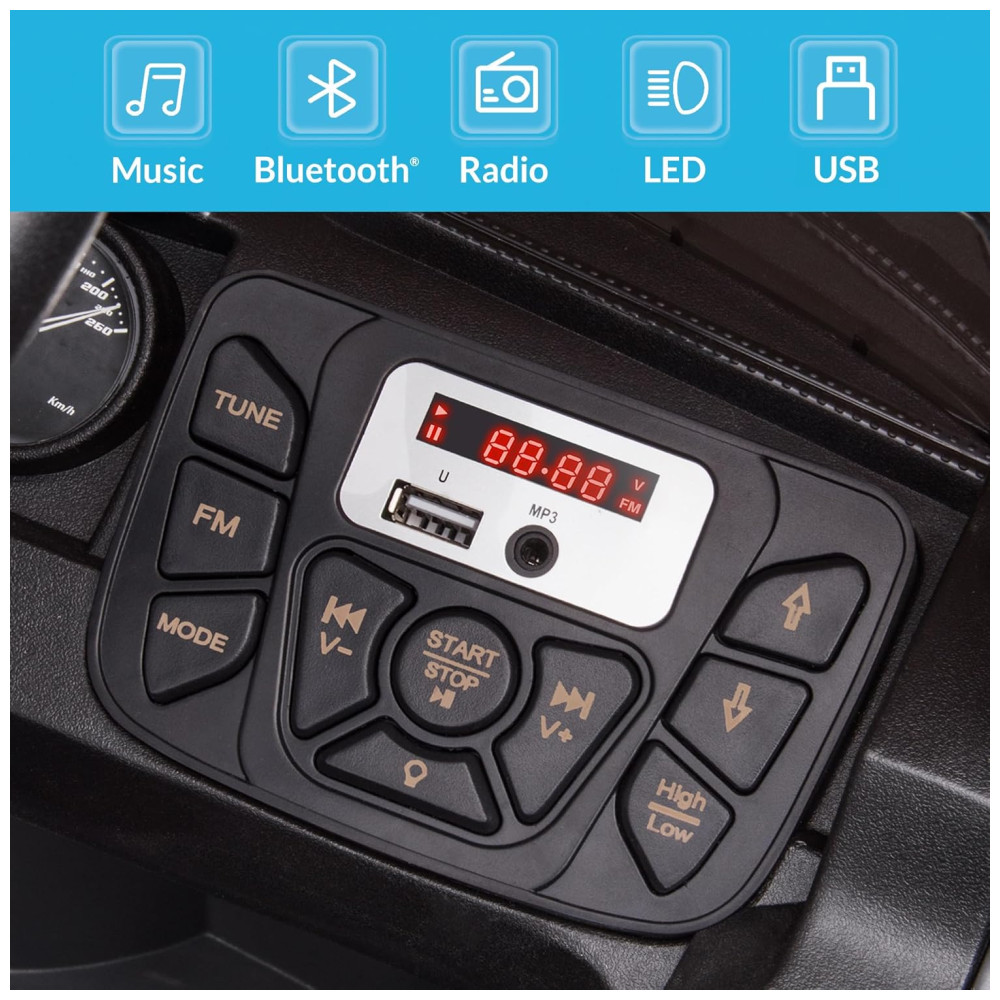 2 MODOS DE CONDUÇÃO Arranque com botão de pressão, escolha entre marcha à frente ou ré e velocidade de condução alta ou baixa. Acelere pressionando o pedal e manobre girando o volante. Deixe seu filho dirigir sozinho ou você pode controlar o veículo usando o controle remoto 2.4G para guiá lo com segurança. O controle remoto está equipado com controles de avanço, ré, estacionamento, operações de direção e seleção de 3 velocidades com faixa de velocidade de aproximadamente 2,4 a 4,2 km, h.