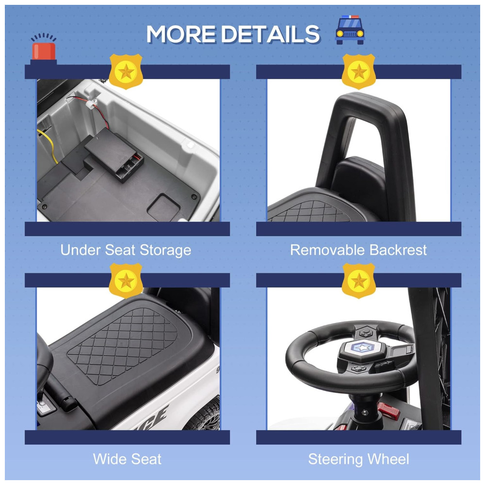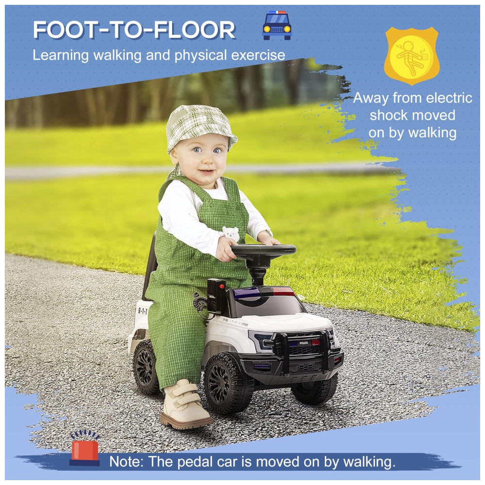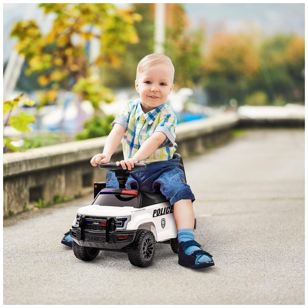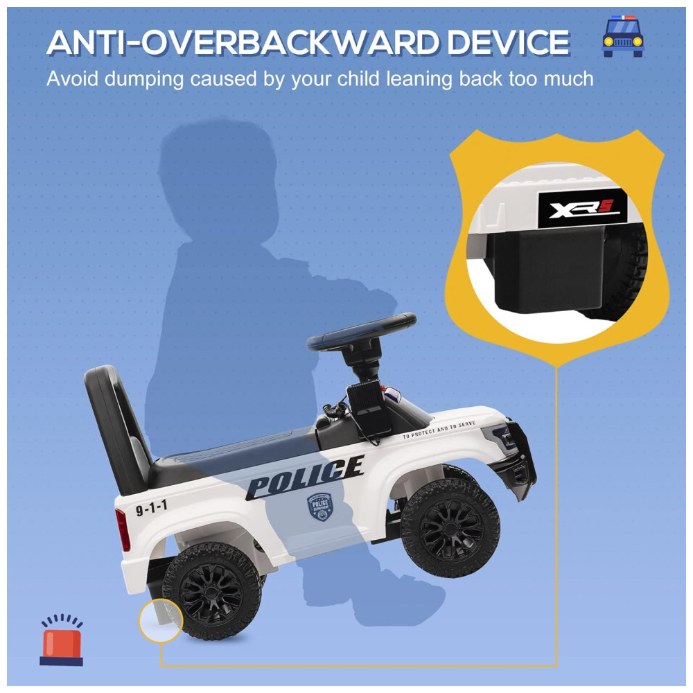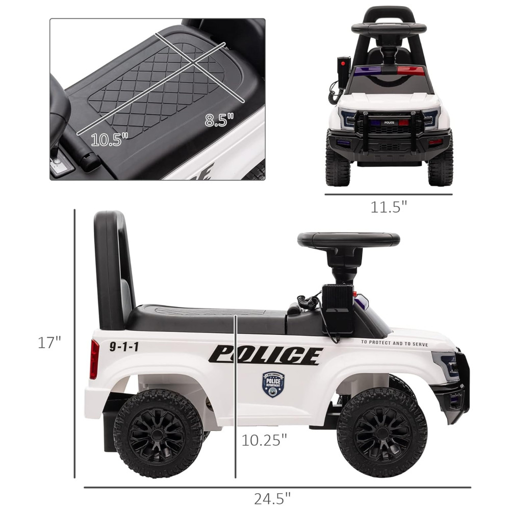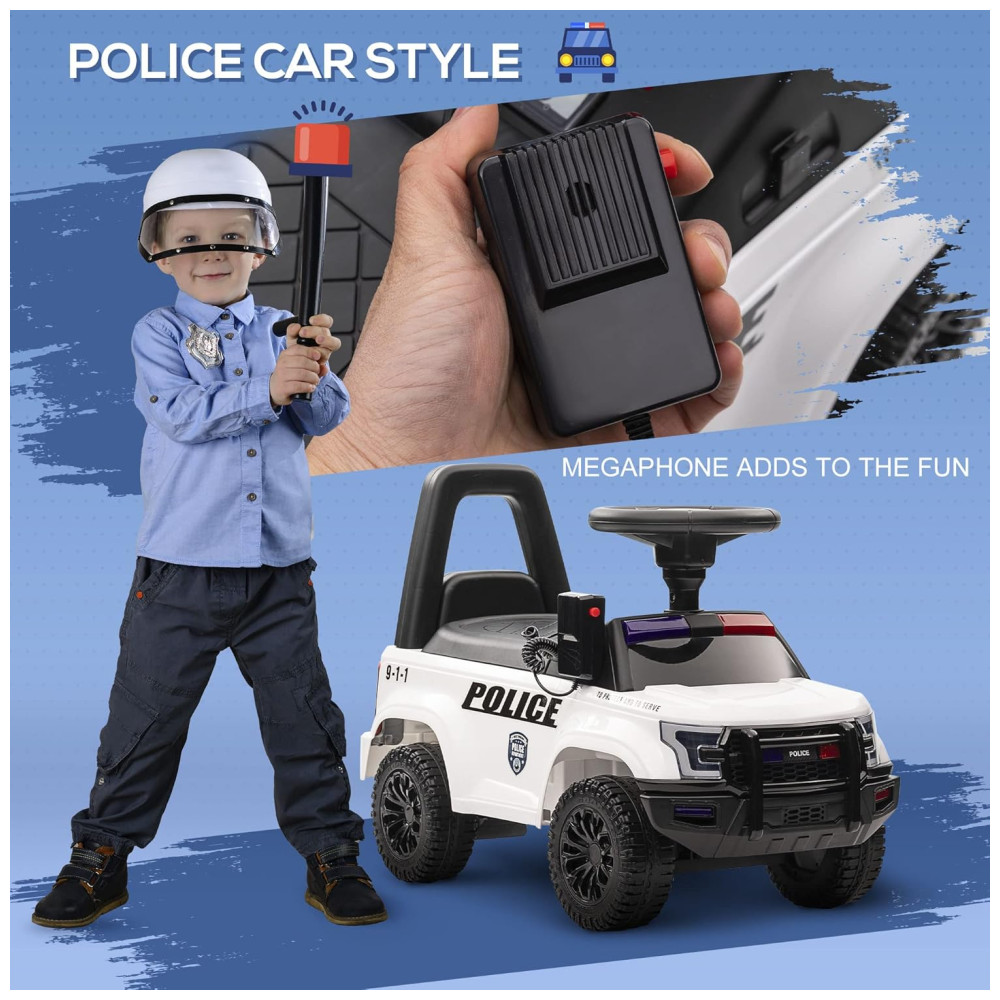 Carro Infantil Policial de Deslizar com os Pés Possui Sistema de Som e Armazenamento Embaixo do Banco Aosom Branco