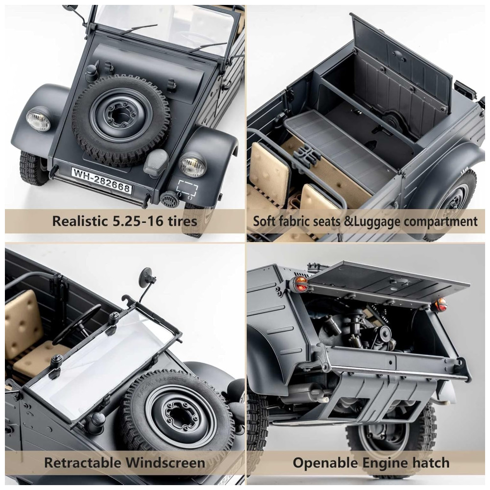 Esse carro militar é uma representação perfeita do carro original em termos de detalhes e função. Desde as portas até o painel, das rodas ao motor e ao chassis, o Type82 foi restaurado completamente. O motor de quatro cilindros opostos horizontalmente refrigerado a ar foi restaurado com perfeição, incluindo a ventoinha de resfriamento acionada por correia. As quatro portas podem ser abertas e fechadas com fechaduras mecânicas, e os pneus, rodas e pneu sobressalente são realistas, com tamanho 5.2516. A suspensão independente nas quatro rodas e o eixo de transmissão totalmente metálico tornam o chassi forte e resistente à torção. O sistema eletrônico inclui um sistema de controle remoto proporcional digital de 4 canais, além do controle de direção e acelerador, e o terceiro canal é para os controles de transmissão de duas velocidades, enquanto o quarto canal é para alternar entre o modo 4WDRWD. Os faróis, piscas e luzes de freio estão vinculados ao TY82 na parte traseira do veículo e o controle de luz noturna permite abrir apenas as luzes antiaéreas.
