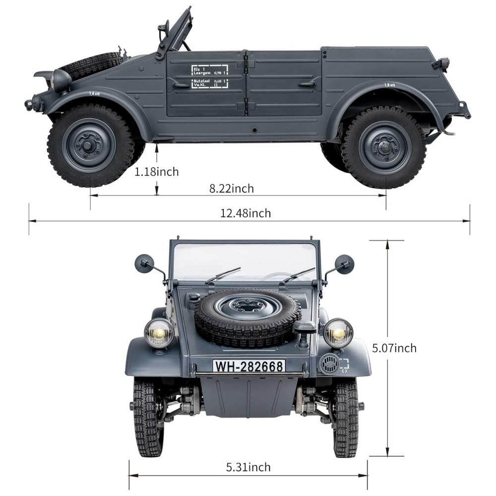 Carro Militar de Controle Remoto para Adultos em Escala 1:12 com Luzes Led WOWRC Cinza