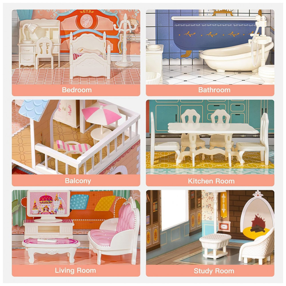 CASA DE PRINCESA BONITA A Robud Doll House vem com móveis ricos, vários quartos e 3 andares tornam a casa muito atraente para as crianças.