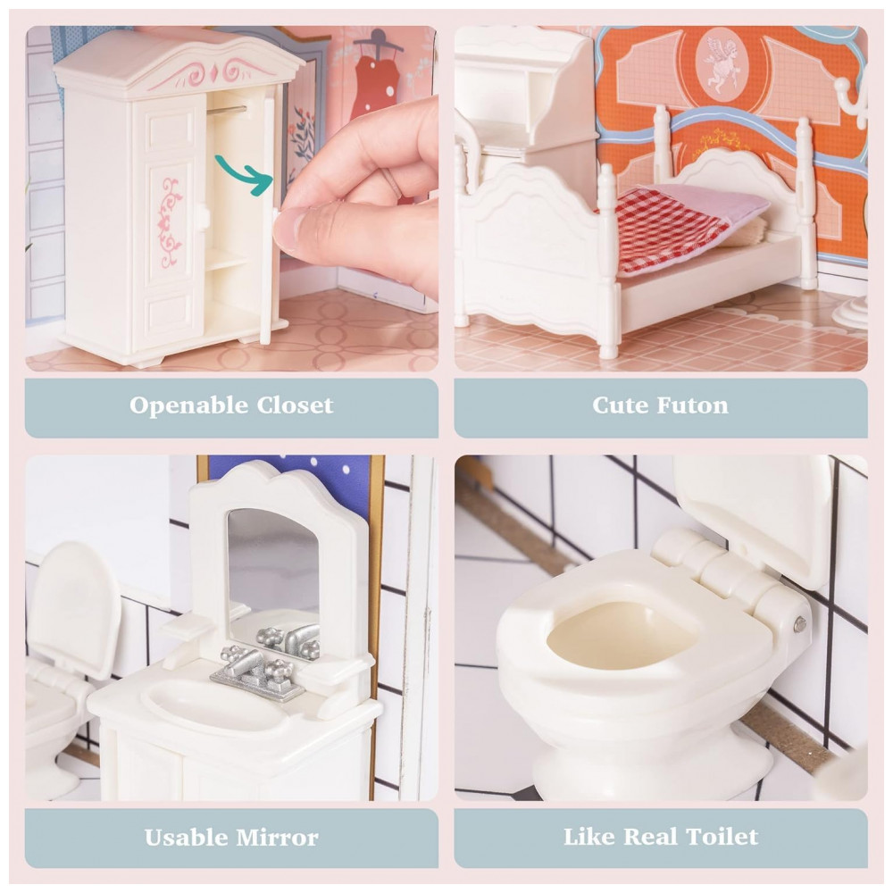 MARAVILHA E DECORAÇÃO INCRÍVEIS A casa de bonecas de madeira de cada quarto é muito colorida e ilustrada com muitos detalhes, fazendo com que pareça real o suficiente para ser divertido para a imaginação