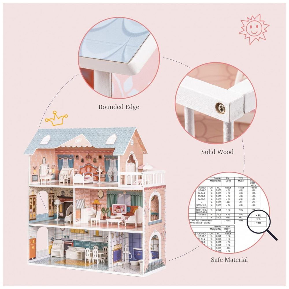 Casa de Bonecas com 3 Andares e Cômodos Customizáveis para Crianças de 3 Anos ou Mais ROBUD Rosa