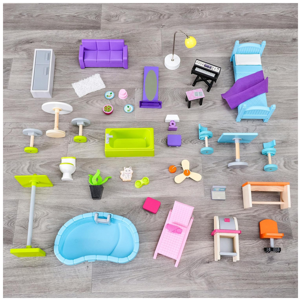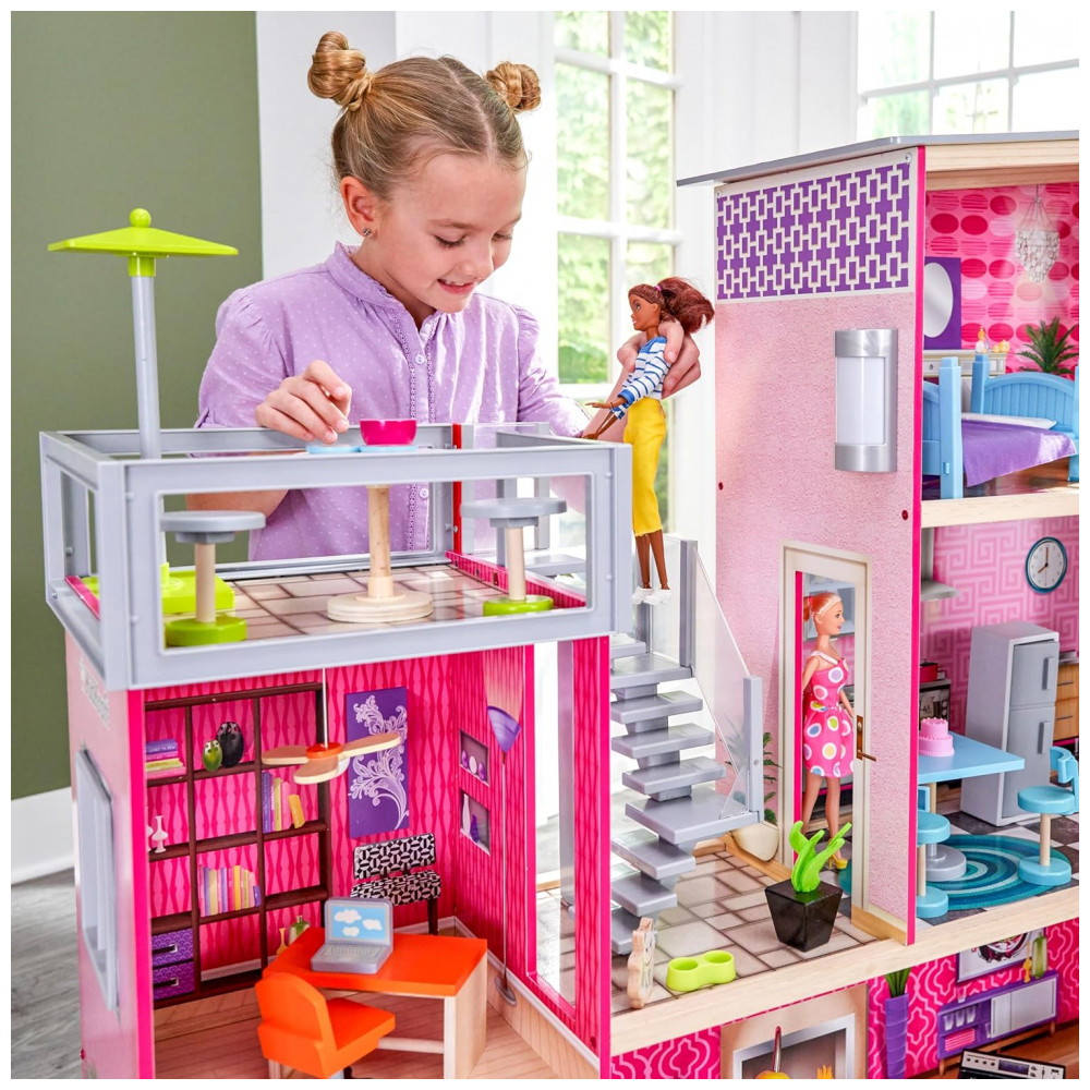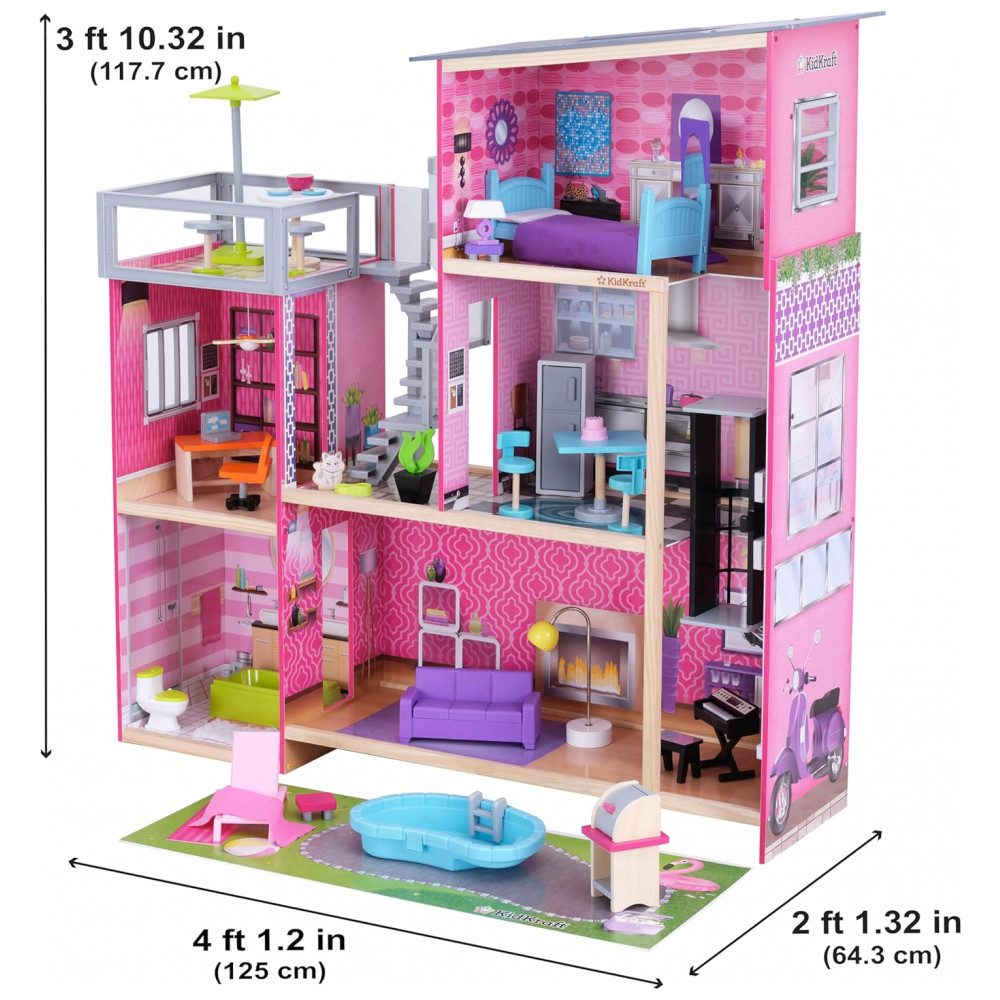 Casa de Bonecas com 36 Acessórios Luzes e Sons para Crianças a partir de 3 anos KIDKRAFT 65833 Rosa