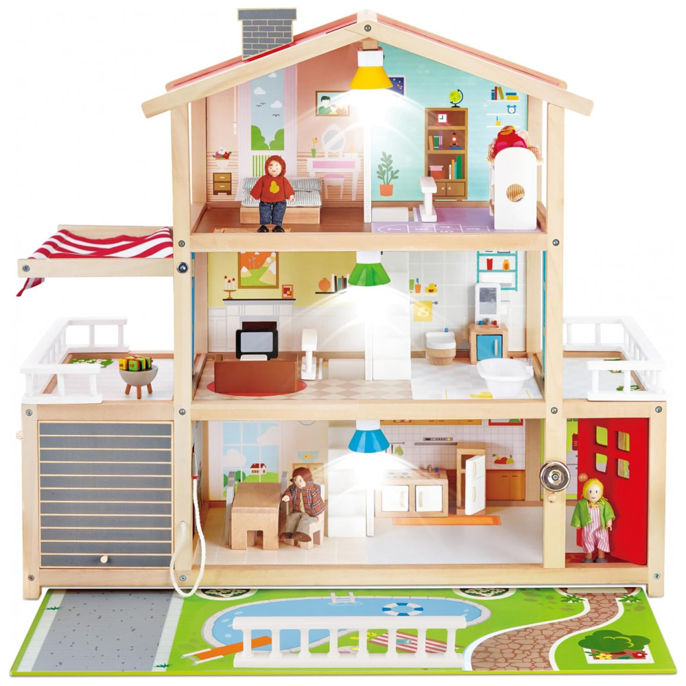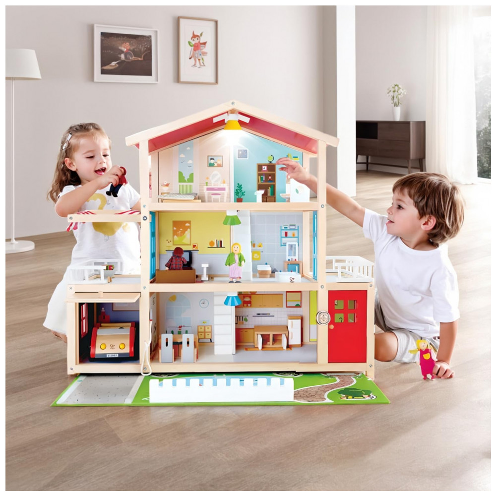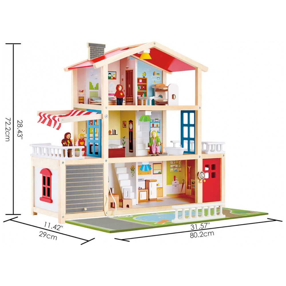 Casa de Bonecas de Madeira 3 Andares 10 Quartos para Crianças a partir de 3 anos Hape Rosa