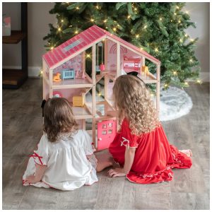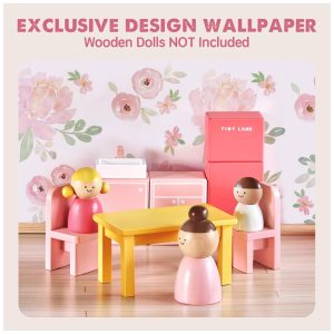 Casa de Bonecas de Madeira 30 Peças com 6 Quartos e Acessórios de Móveis para Crianças de 3 a 12 Anos TINY LAND Rosa