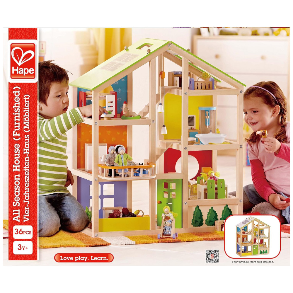 Uma clássica casa de bonecas de madeira de 3 andares que incentiva a imaginação com os amigos.