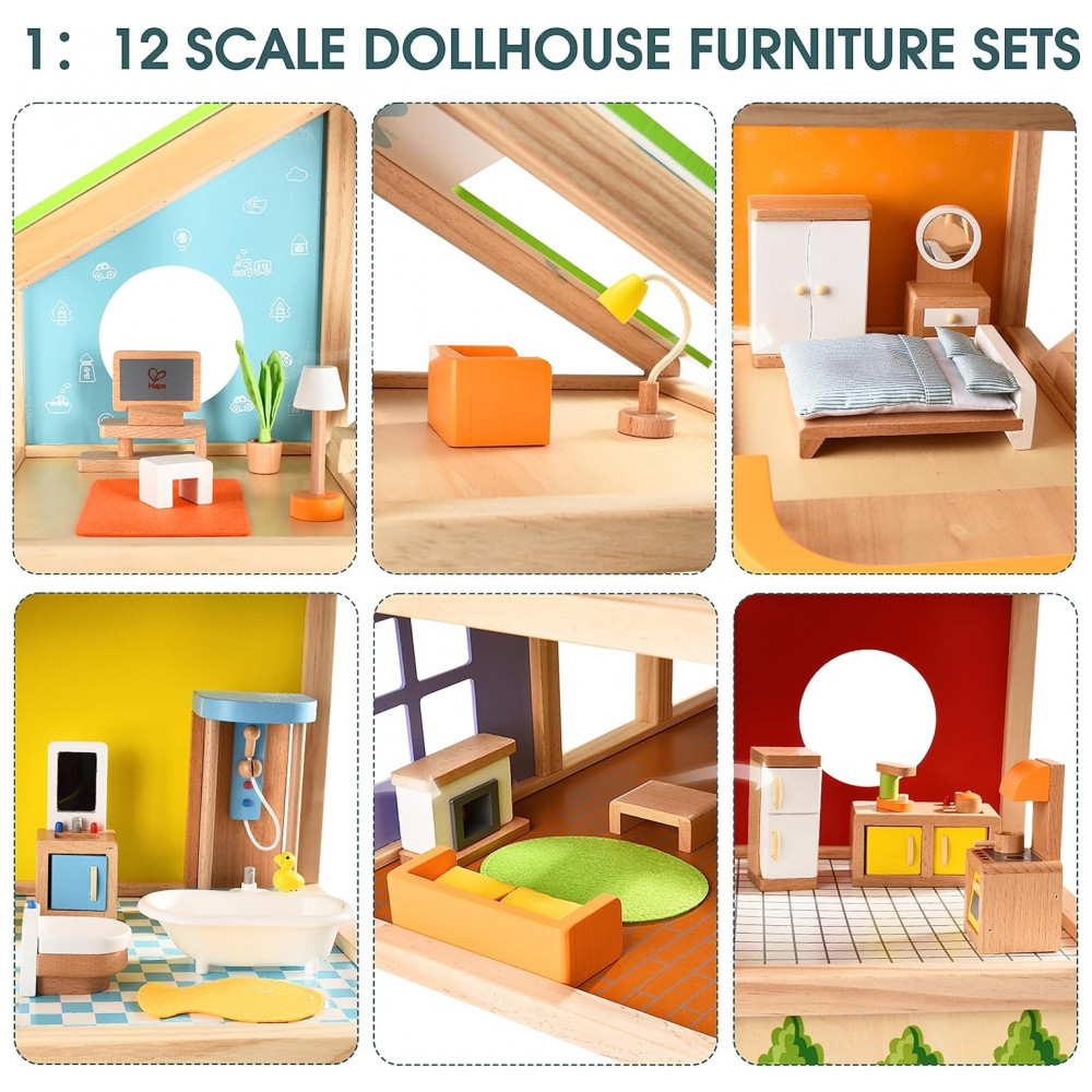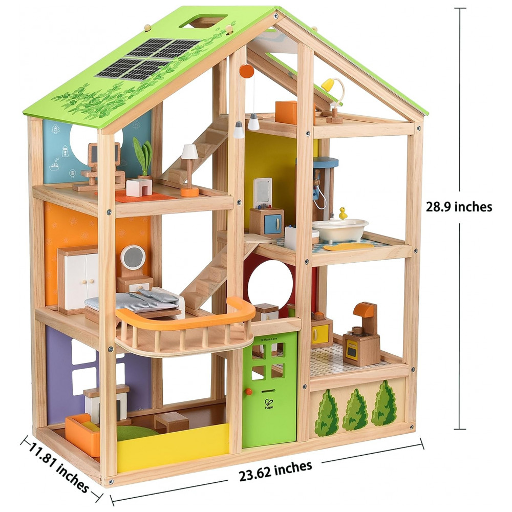 Casa de Bonecas de Madeira com 3 Andares 1 Quartos para Crianças a partir de 3 anos Hape Verde