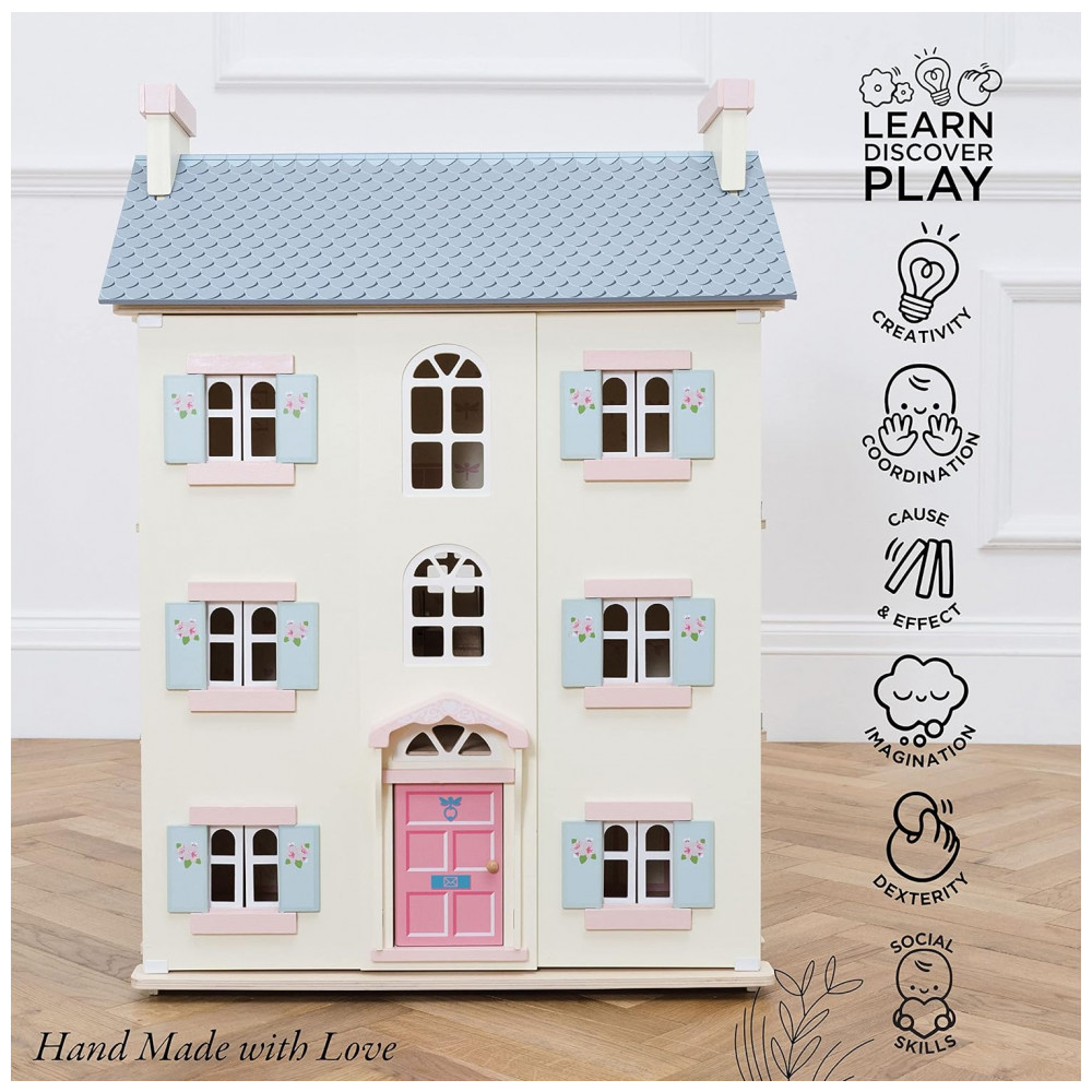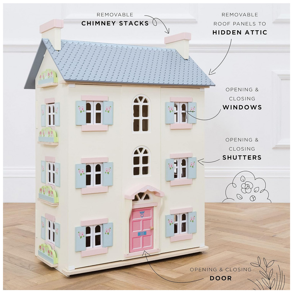 CONJUNTO DE JOGOS DE MADEIRA COLORIDO E EDUCACIONAL O crème de la crème. Seu pequeno vai adorar este brinquedo de madeira de casa de boneca para meninas ou meninos A maior casa de bonecas da Le Toy Van Uma grande casa de bonecas de 4 andares com 92 centímetros de altura e motivos florais. Bonecas e móveis vendidos separadamente escolha entre a extensa coleção de conjuntos de móveis para casas de bonecas Le Toy Van. Seu filho será a inveja de todos os seus amigos com esta luxuosa casa de bonecas de madeira